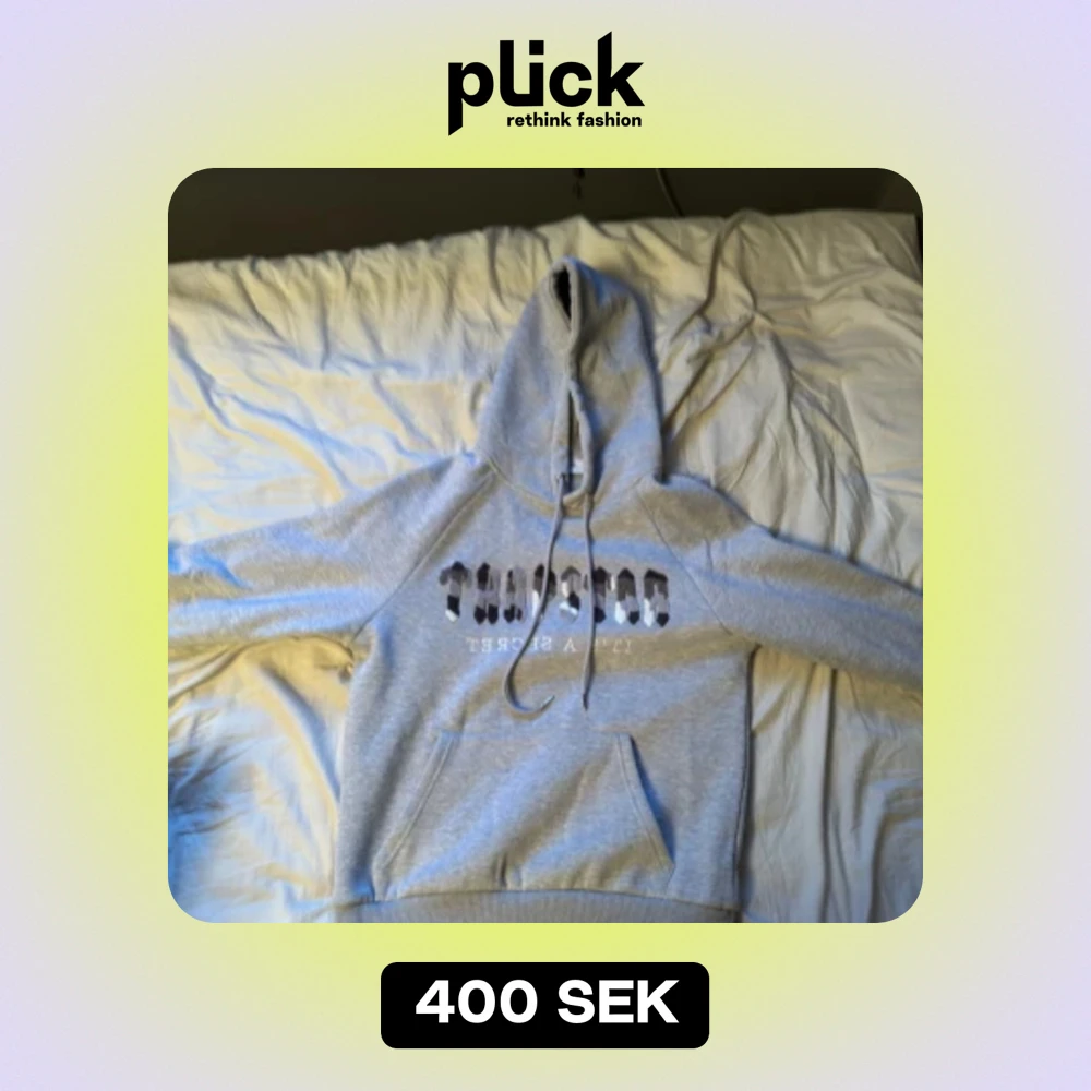 Trapstar hoodie grå med lurvigt tryck Storlek: S Passar mer som en M skulle jag säga Finns tecken på tvättning den är lite nopprig men inget som märks när man kolla lätt att ta bort också