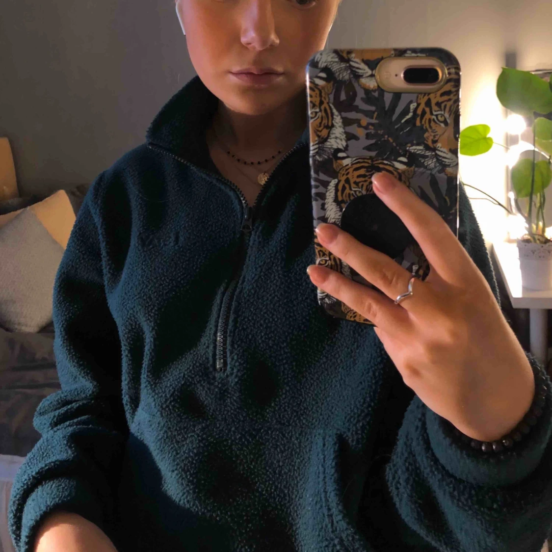 Mörkgrön fleece från carlings, knappt använd. Med dragkedja och resår nertill som du själv kan justera. Mycket bra skick!