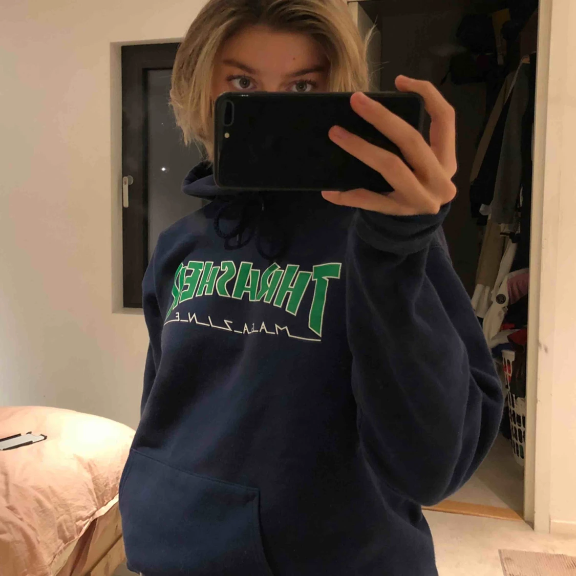 Säljer min coola thrasher hoodie men blåa och gröna färger, unisex. Passar S-L. Finns i Stockholm. Köparen står för frakt! Buda!
