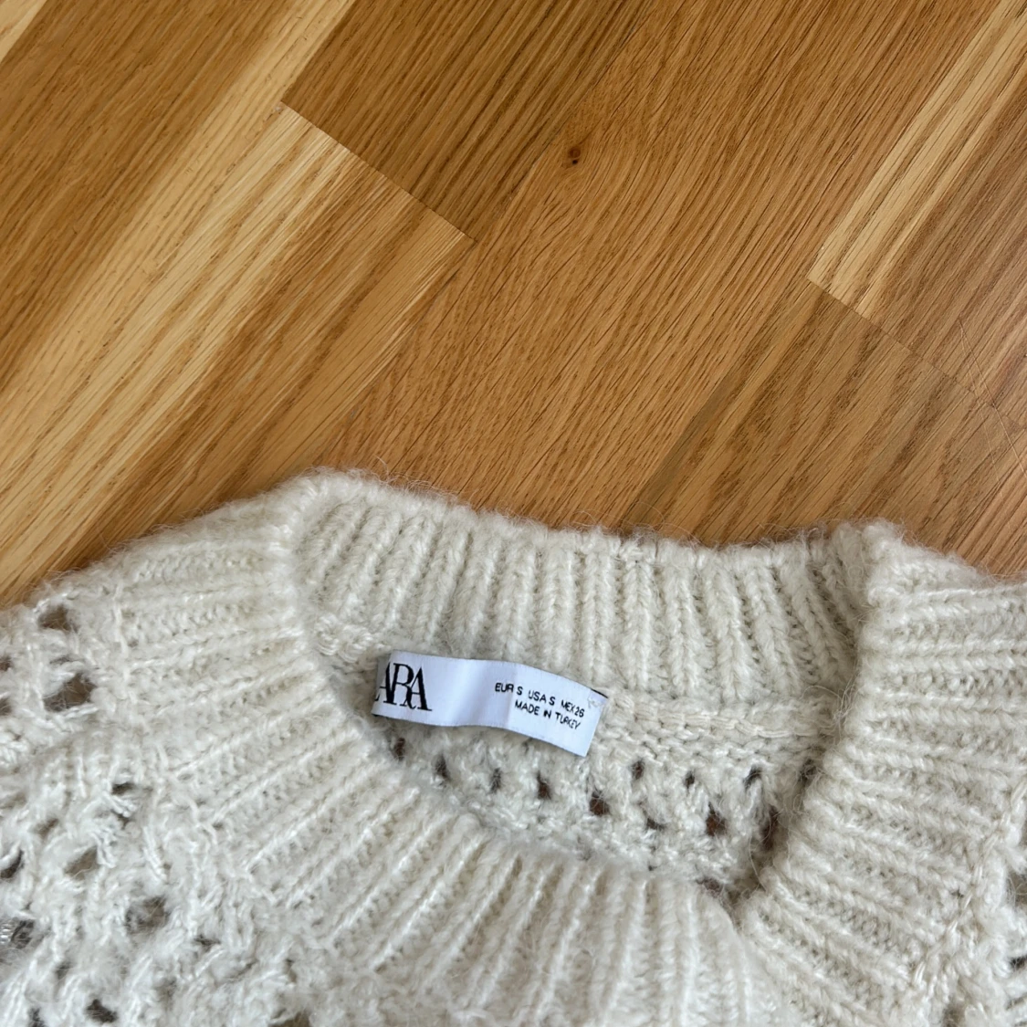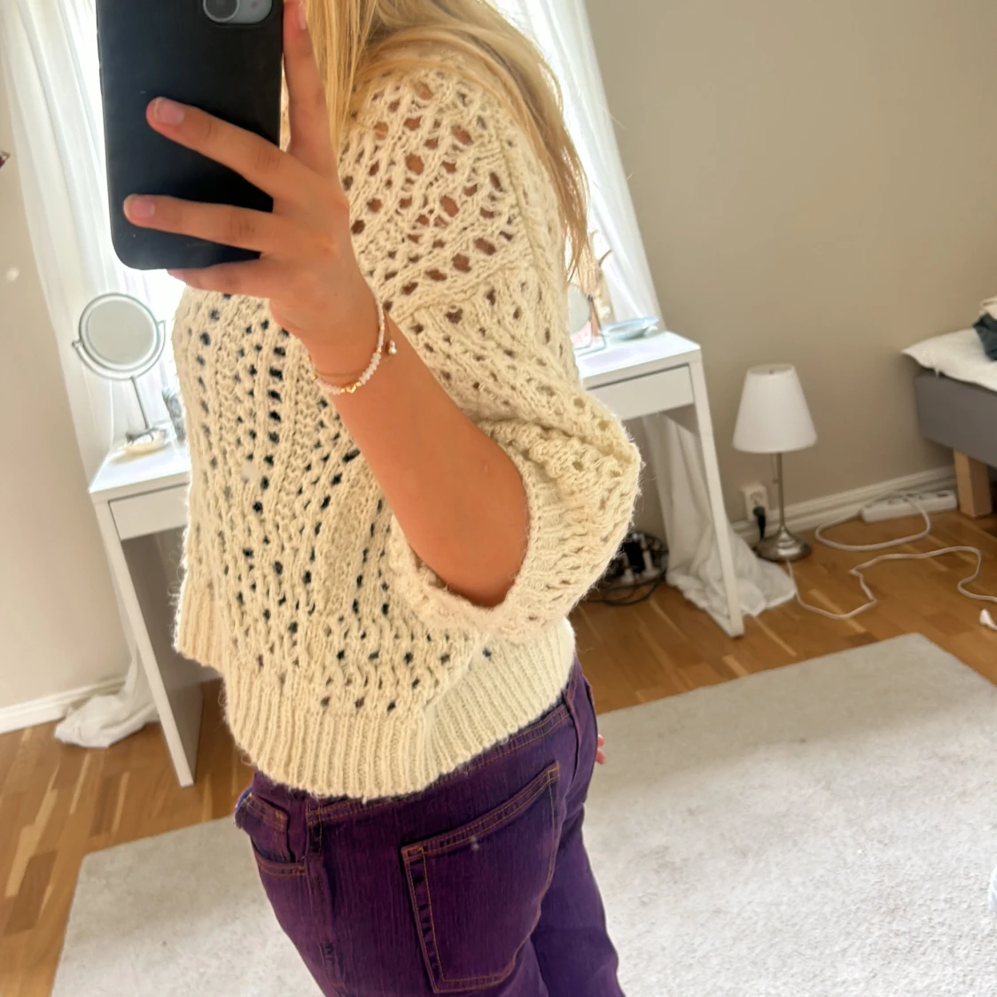 Säljer denna vita stickade t shirt fårn zara. Knappt andvänd. Passar på s-m