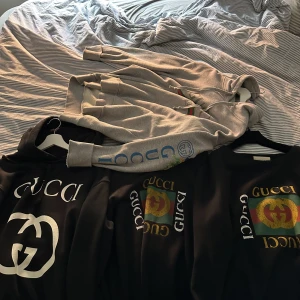 Storlek L i samtliga plagg men funkar för dig som har xl med! Alla är givetvis äkta och kan skicka mer bilder! Gråa Gucci hoodie med inbroderad drake 5000kr Resten 4500 kr per hoodie/tröja! 5000 kr Paketpris går att fixa med om man vill ha alla