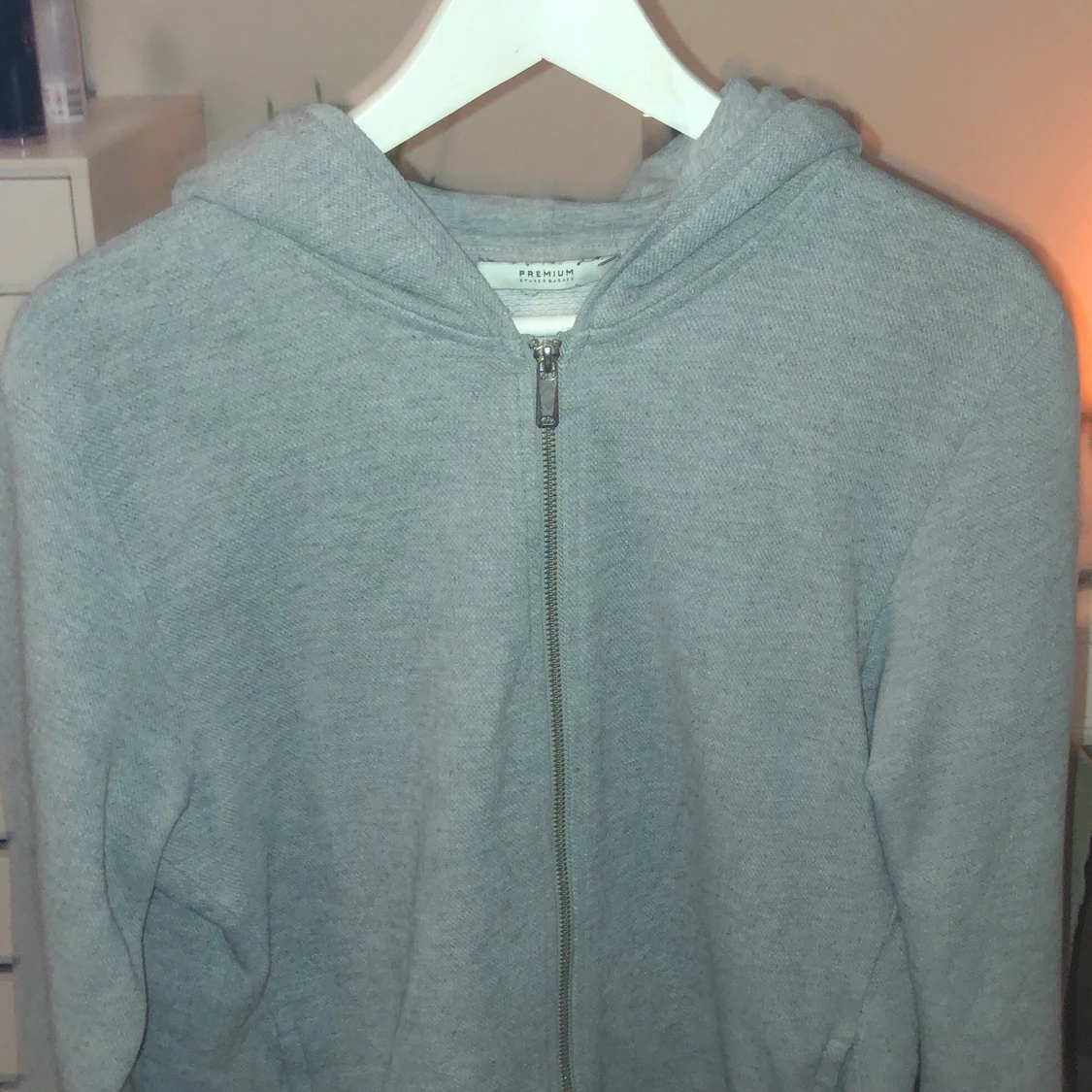 Säljer denna väldigt snygga gråa hoodien från Jack&Jones. Den är knappt använd men köpte den på sellpy💗