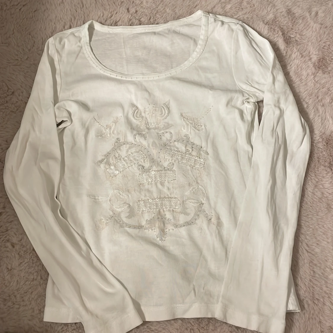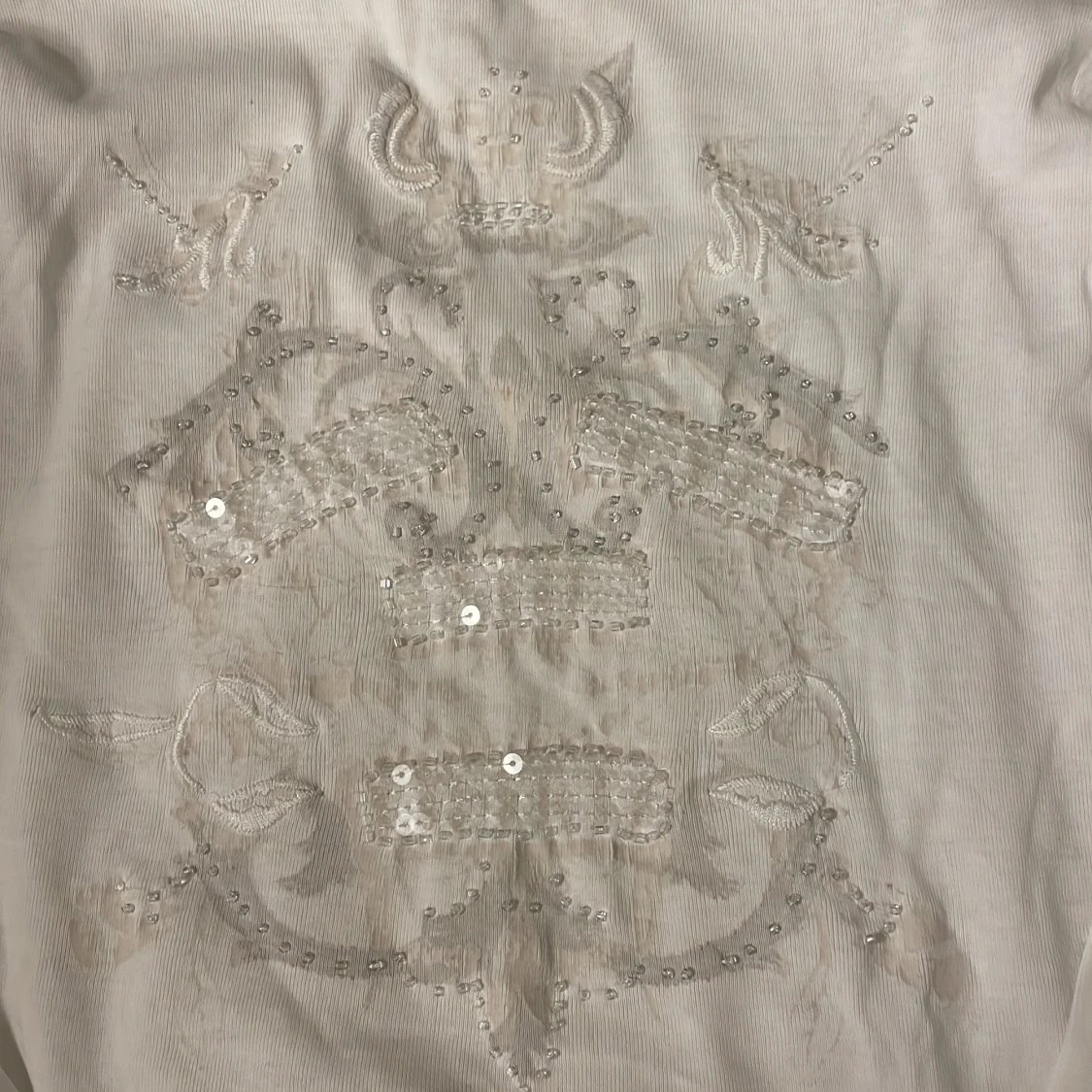 Vanlig vit tröja me coola ditaljer men andvände inte längre skriv om frågor o sådant ❤️