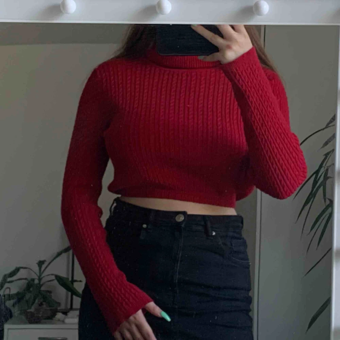 Mörk röd croppad ribbad turtle neck tröja! Änvänd fåtal gånger (super bra skick)😛 Passar både S och M💞 150kr frakt ingår!🌹🌹