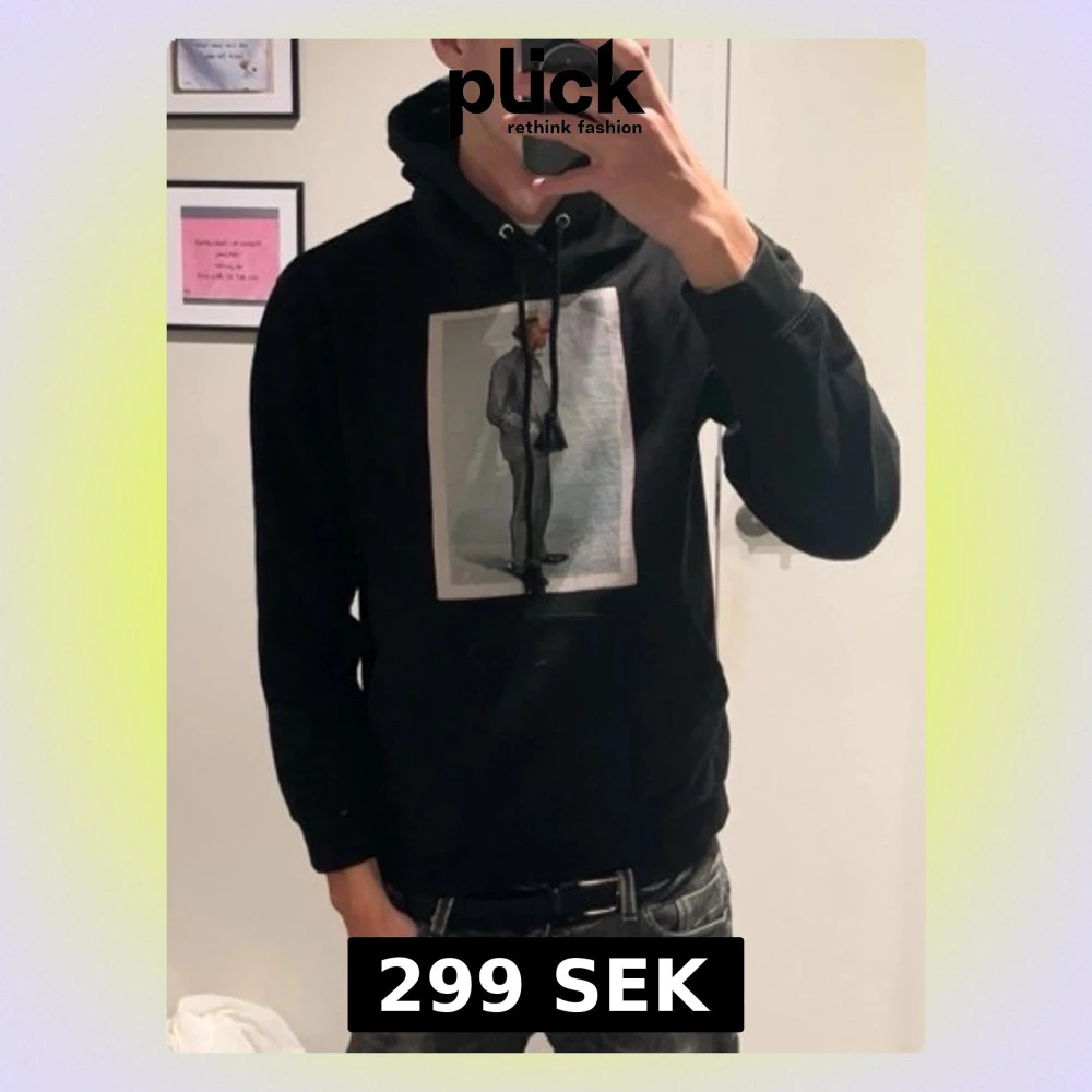 Svart hoodie med luva och dragsnören. Perfekt för en avslappnad och stilren look. Storlek S men passar XS. Nypris 600kr. Pris kan diskuteras