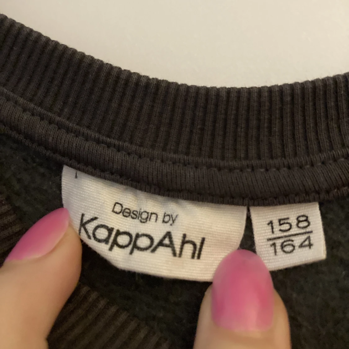 Sweatshirt från Kappahl med tryck. Ser svart ut på bilden men är mörkgrå.