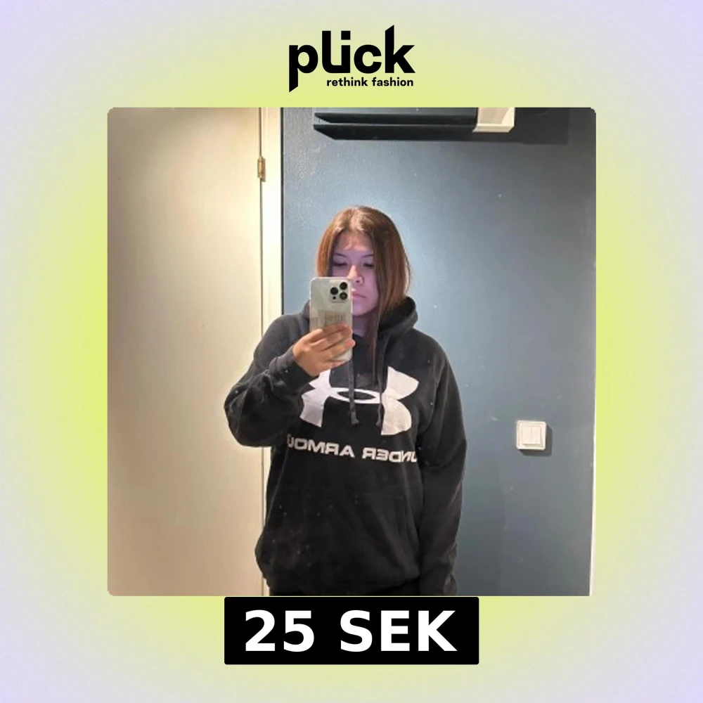 Svart hoodie från Under Armour i storlek XL med stor vit logga och text på bröstet. Tröjan har huva med snörning och en rymlig magficka. Mjuk insida och ribbade muddar vid ärmslut och nederkant.