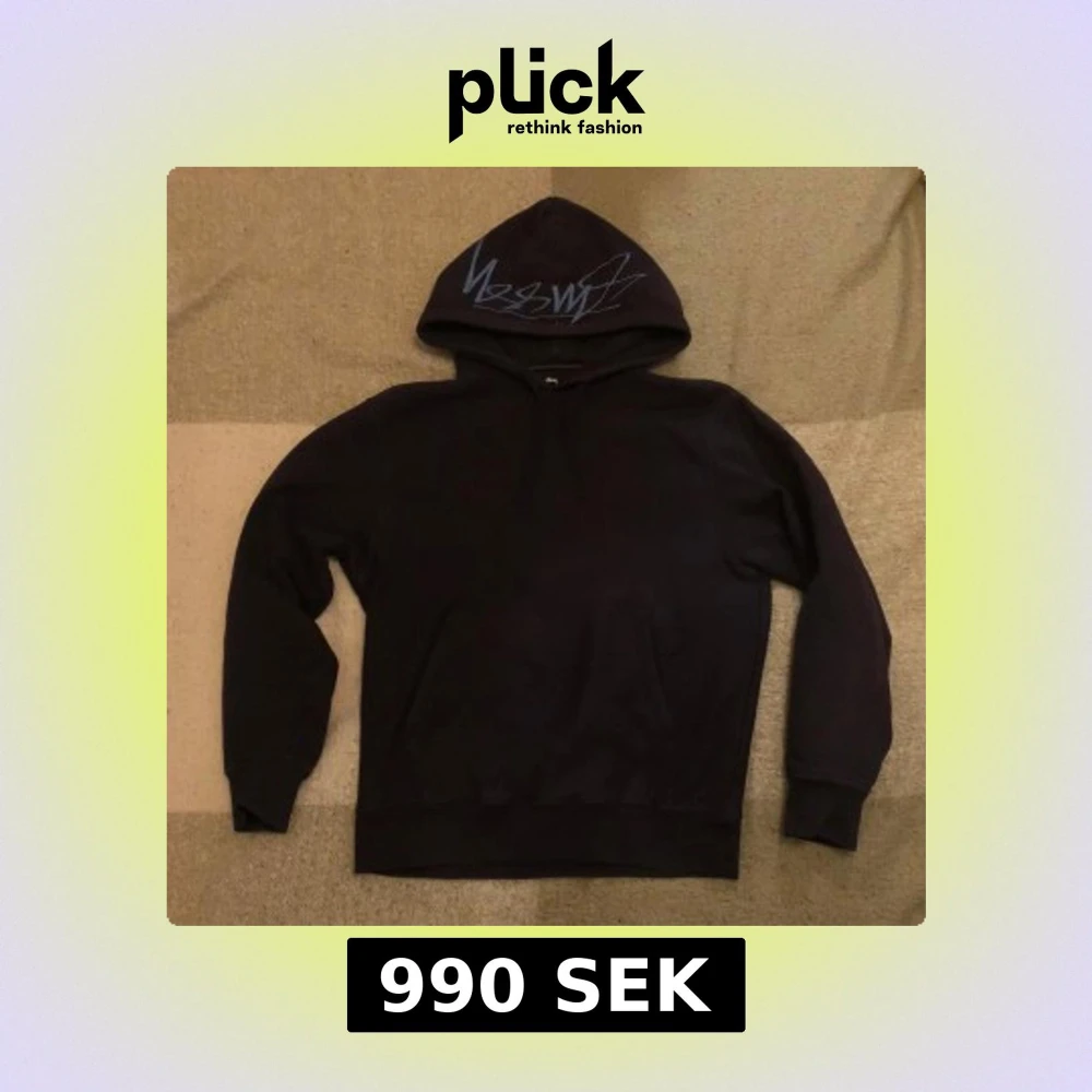 Säljer en mörkblå STÜSSY hoodie med skön passform. Det står storlek S men den sitter M. Hoodien har ett häftigt och unikt broderat tryck på luvan. Hoodien är jätte skön och är i bra skick. Skriv privat vid frågor!