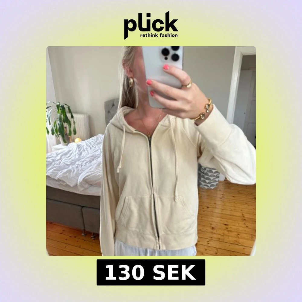 Beige hoodie med dragkedja