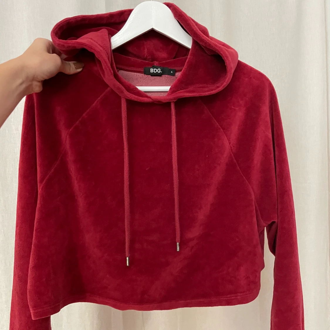 En superskön croppad velourhoodie från BDG Urban Outfitters. Är i gott skick, använd sparsamt. Det står storlek L i den, men jag skulle vilja säga att den passar som en storlek S. Perfekt plagg för mys i höst och vinter. Passsr tyvärr inte min stil längre.