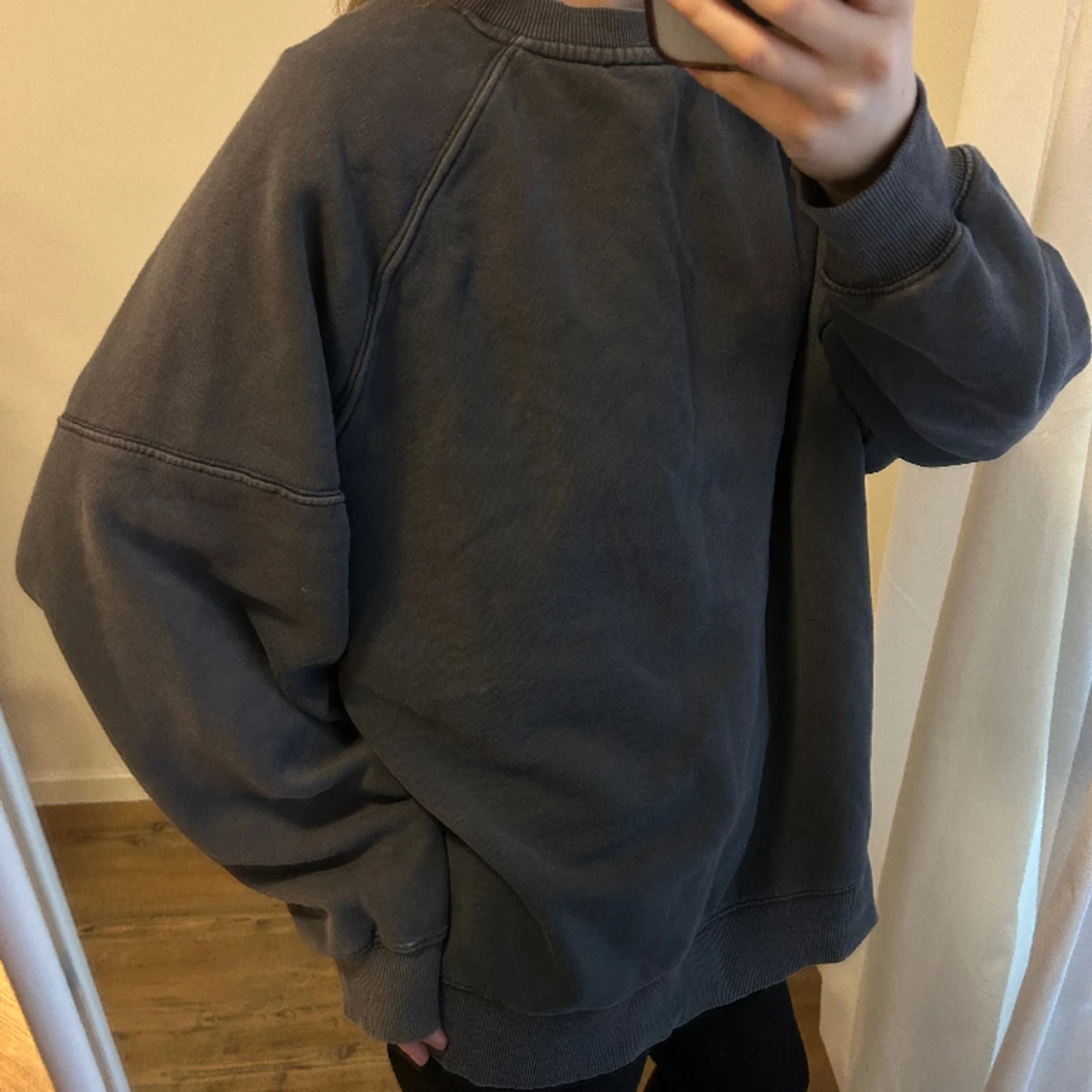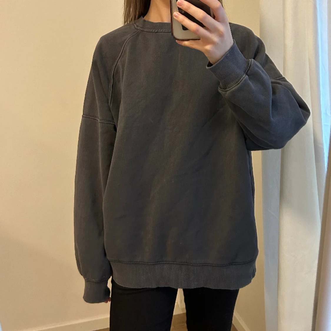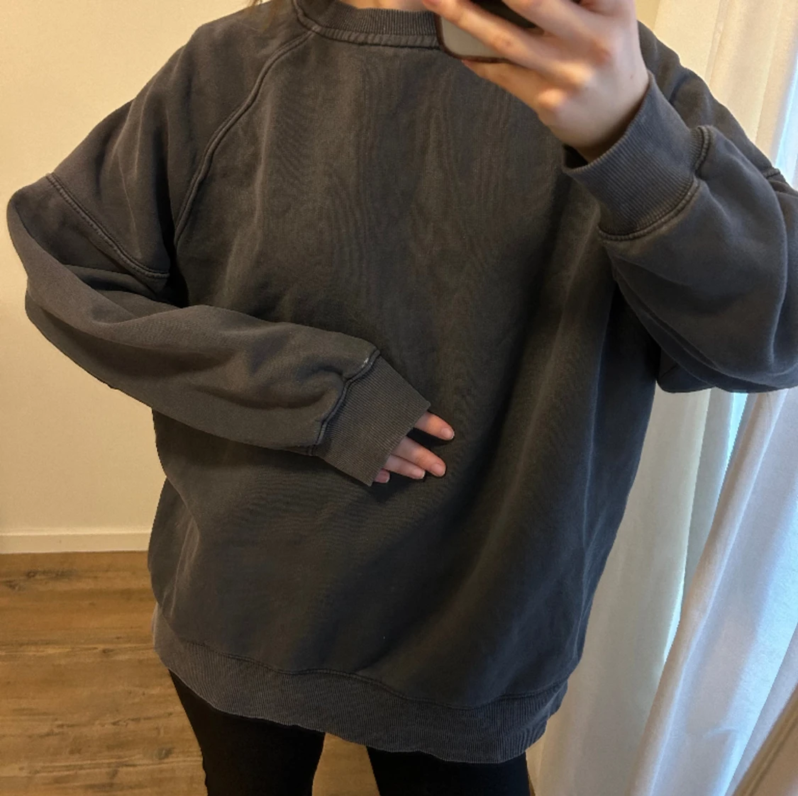 Collagetröja i grå urtvättad färg (inte urtvättad påriktigt). Oversize och passar på mig som ofta bär XS.