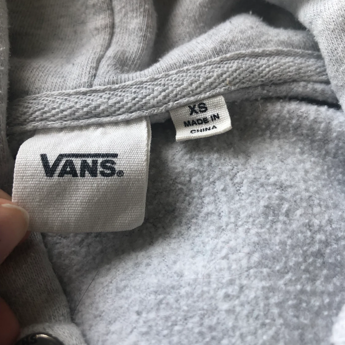 En cool Vans Hoodie med mörkrött tryck. Den är i storleken XS men man skulle kunna ha den som storlek S. Den har en liten fläck, se bild 3 men annars fråga görna om fler bilder eller annat❤️