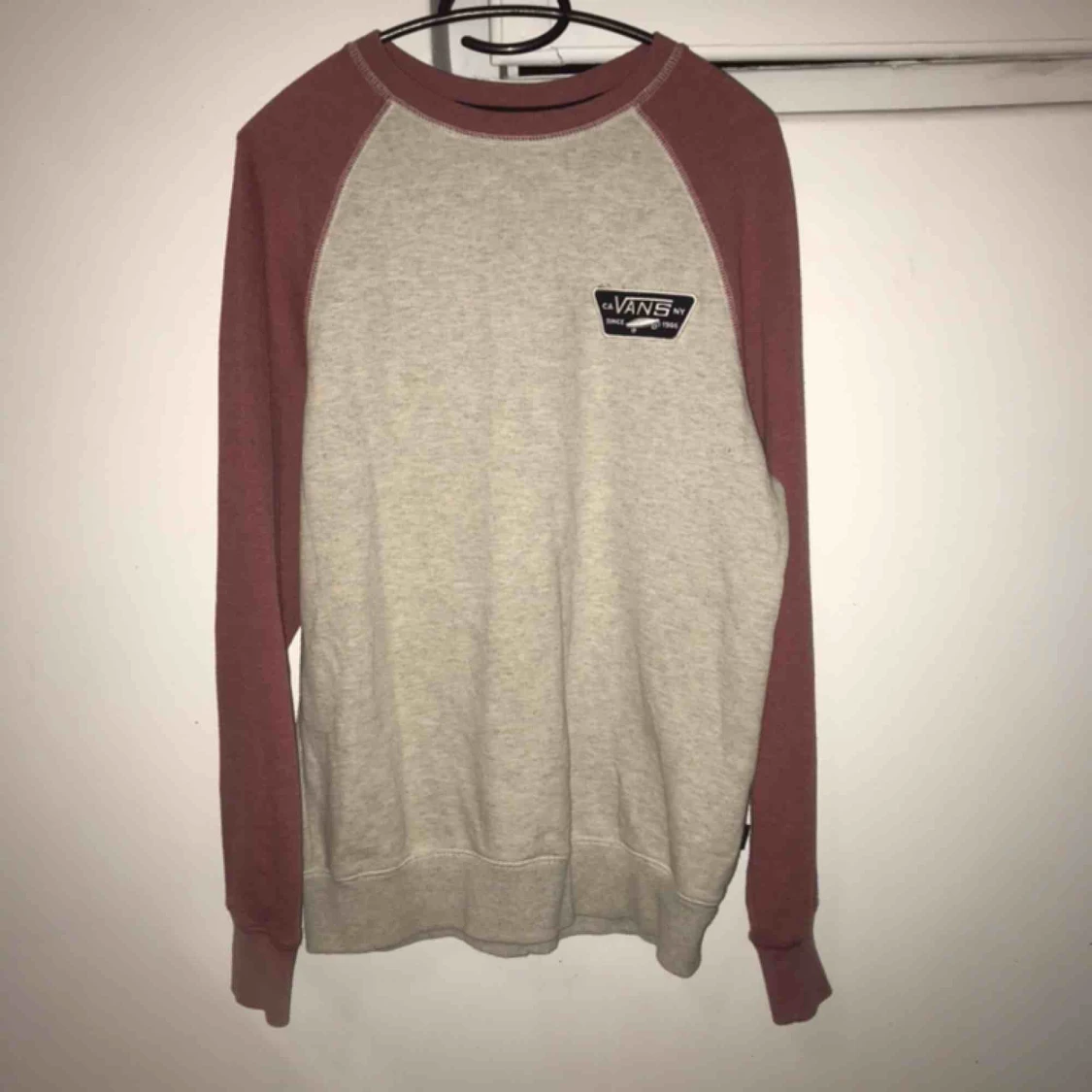 Snygg tvåfärgad sweatshirt ifrån Vans. Mjukt, behagligt material inuti. Storlek M, normal passform. Sparsamt använd, nyskick. Fraktkostnad 66 kr