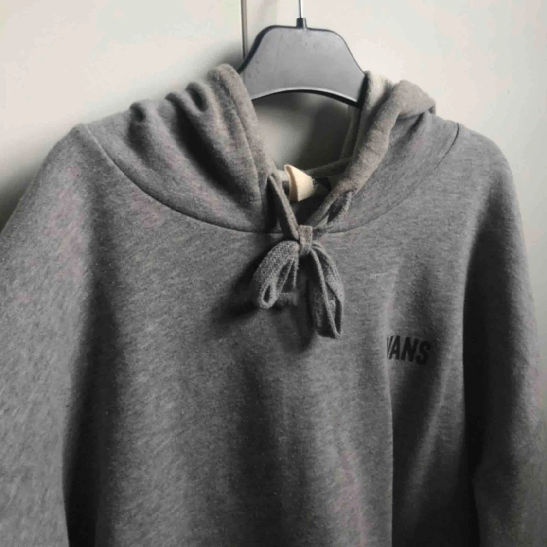 En jättefin grå vans-hoodie med ett coolt tryck på ärmarna. Bra skick! Pris: 200kr, frakt tillkommer💕