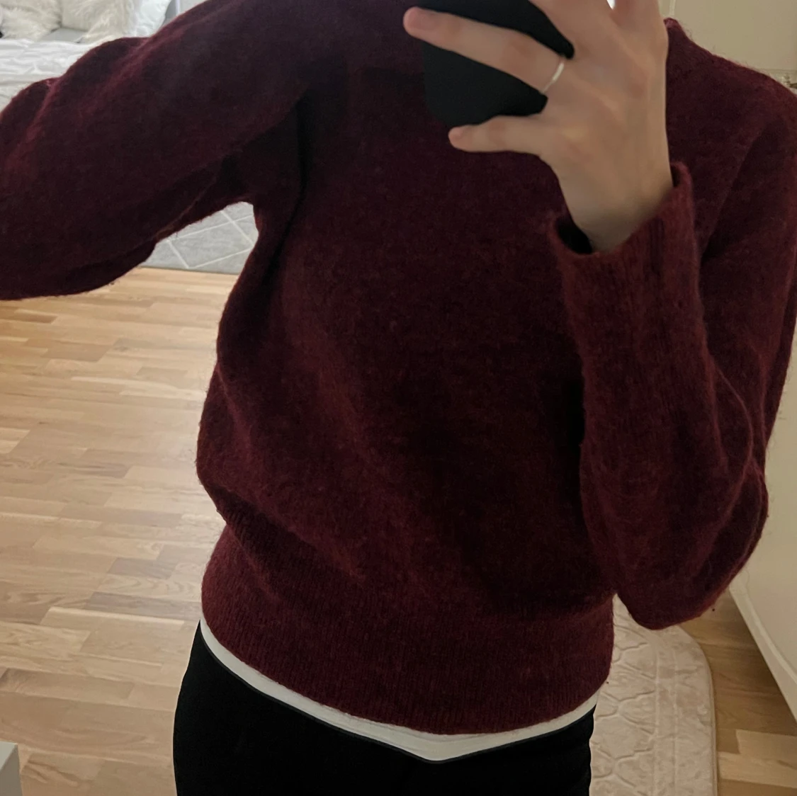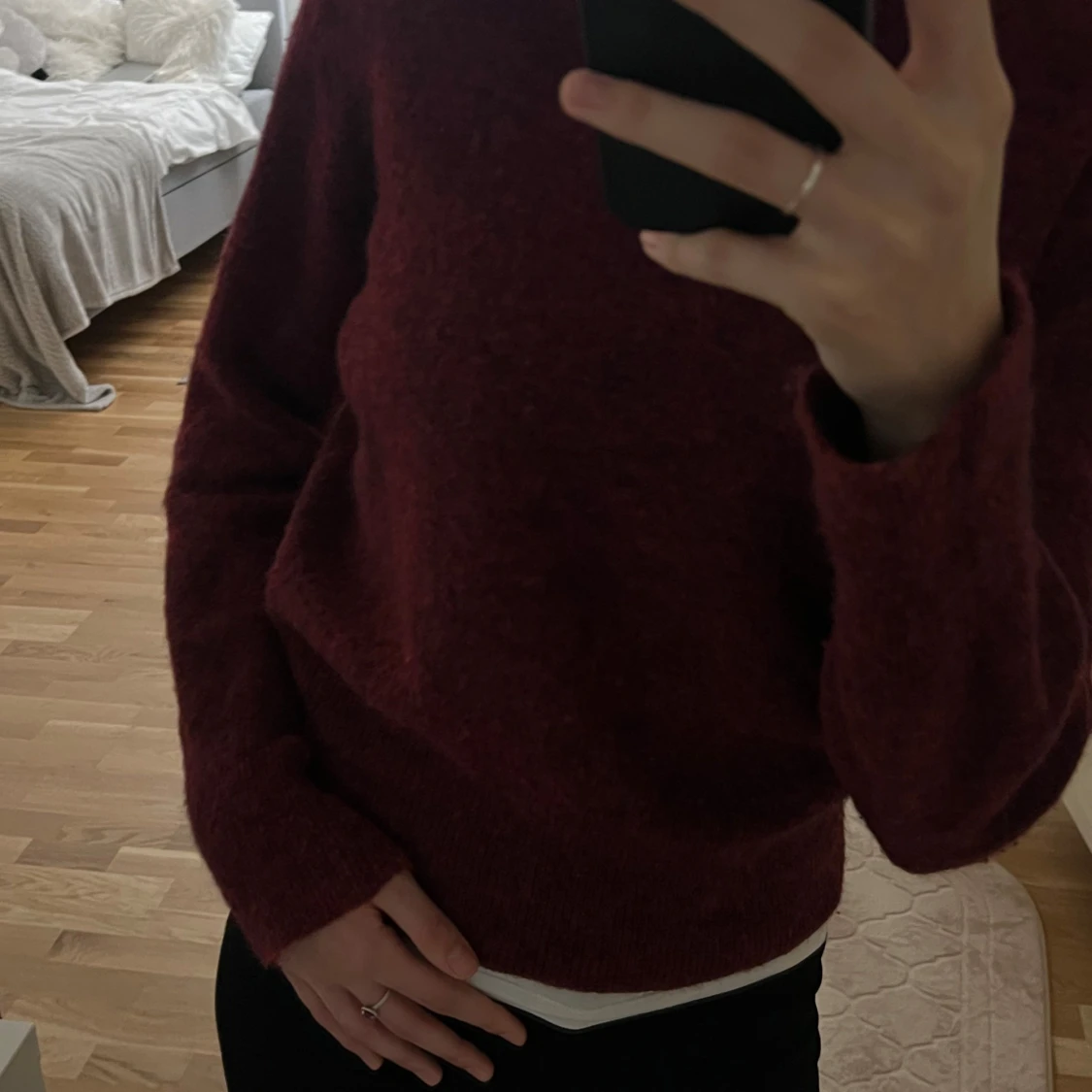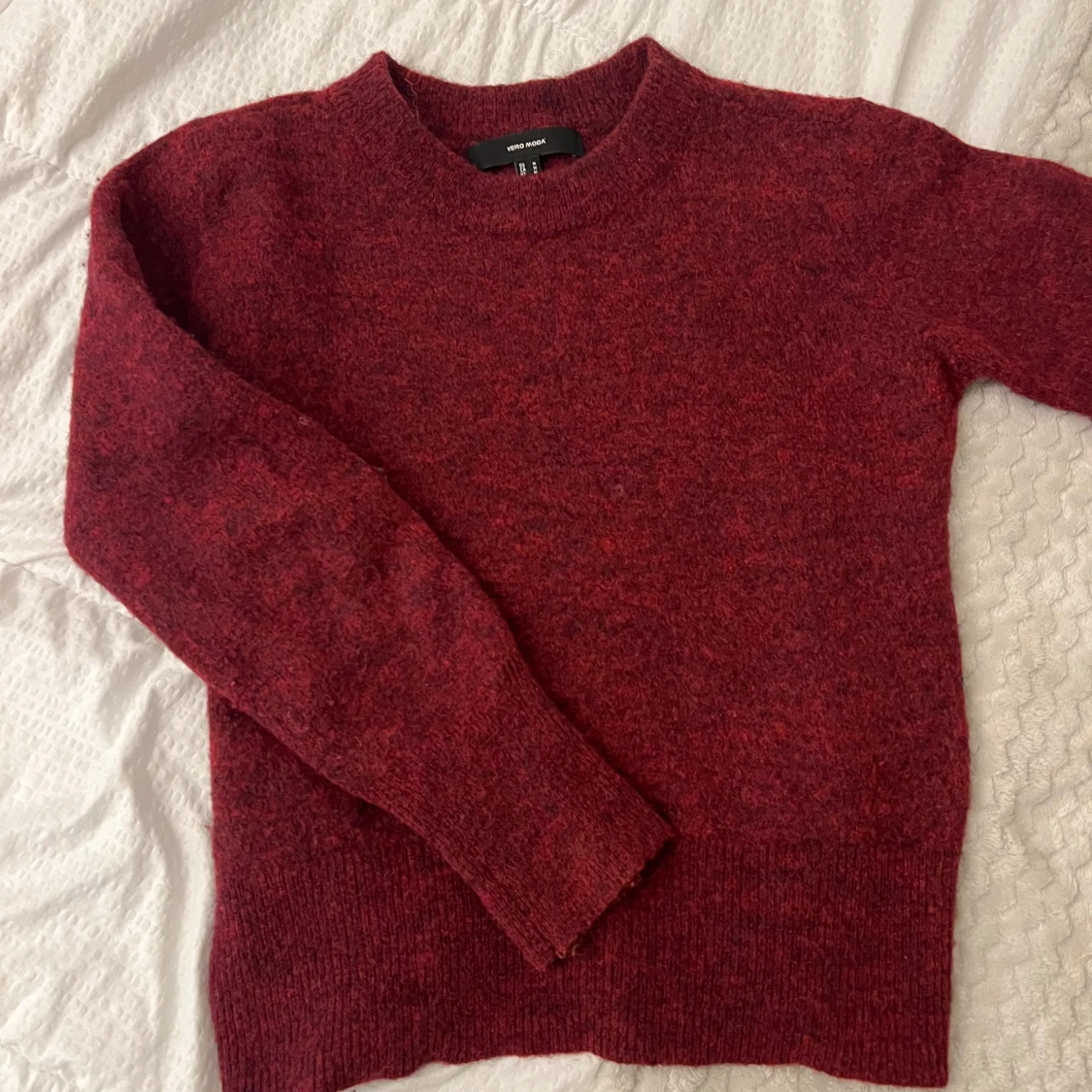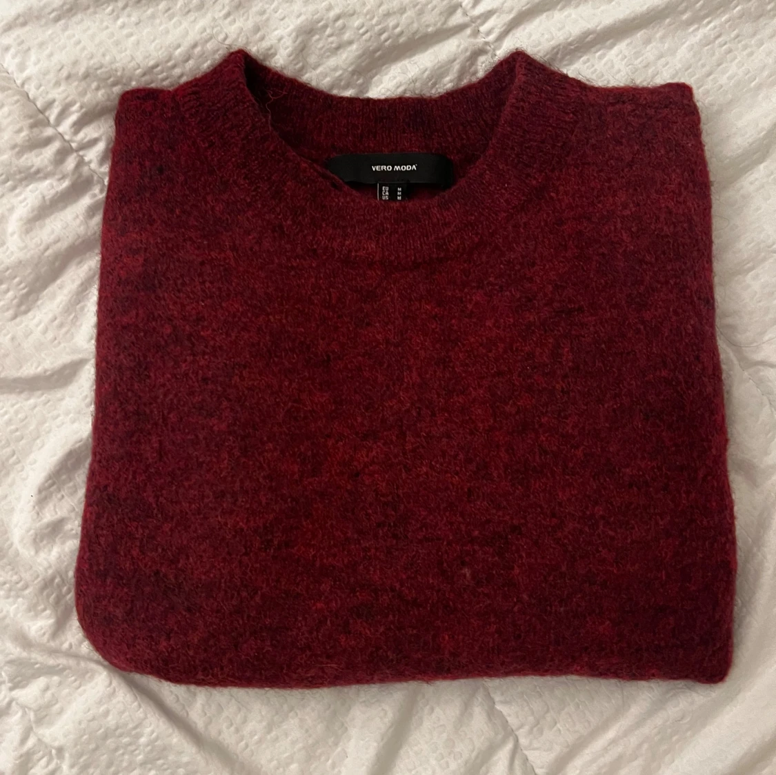 Säljer en mysig vinröd tröja från Vero Moda. Tröjan har en klassisk rund hals och långa ärmar, perfekt för kyligare dagar. Den är tillverkad i ett mjukt material som ger en bekväm passform. Passar utmärkt till både jeans och kjol. Hör av dig vid intresse!Tröjan är size M men känns som S 🍂