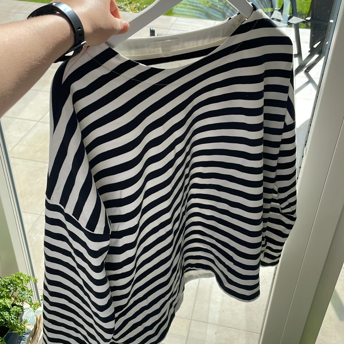 Superfin tröja från cos. Strl L! ränderna är mörkt blå/ svarta. Köparen står för frakt