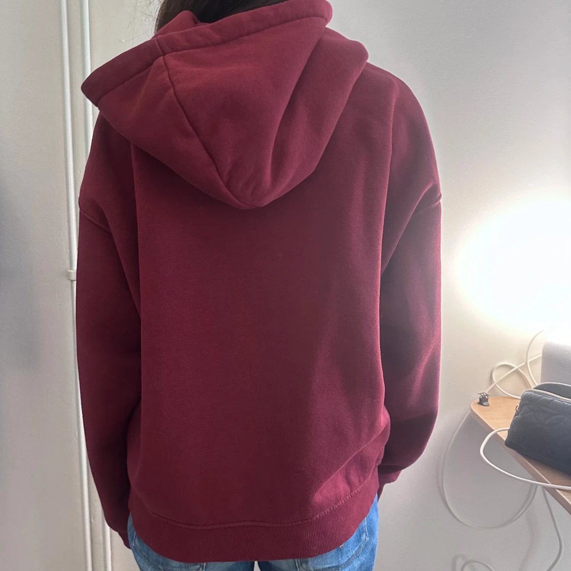 Vinröd hoodie från Gina Tricot med klassisk känguruficka och huva. Tröjan har en relaxed passform och är tillverkad i mjuk bomullsblandning. Perfekt för chill dagar eller när du vill vara extra bekväm. Storlek S men skulle säga att den även passar M. Priset är diskuterbart och skriv gärna frågor till oss❤️