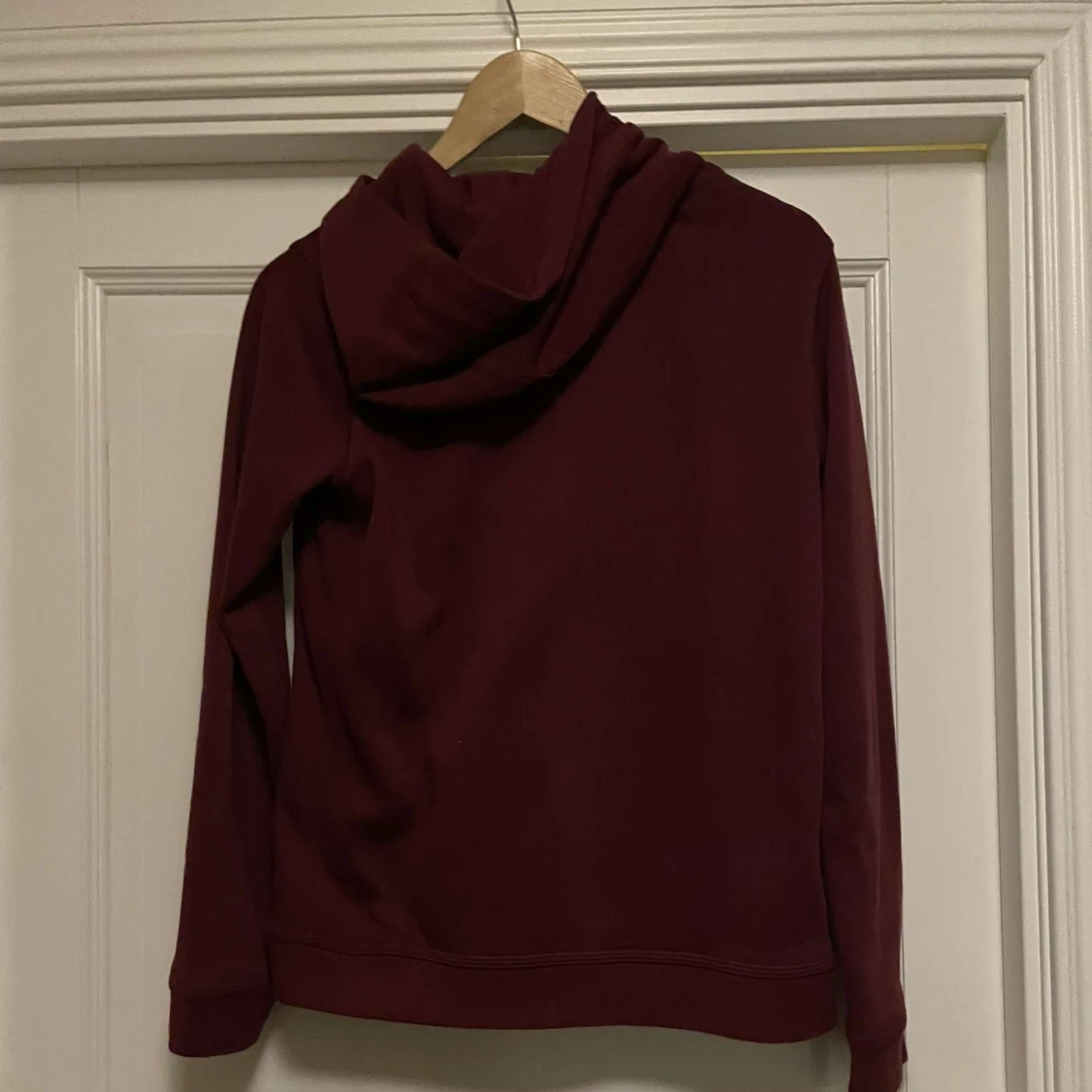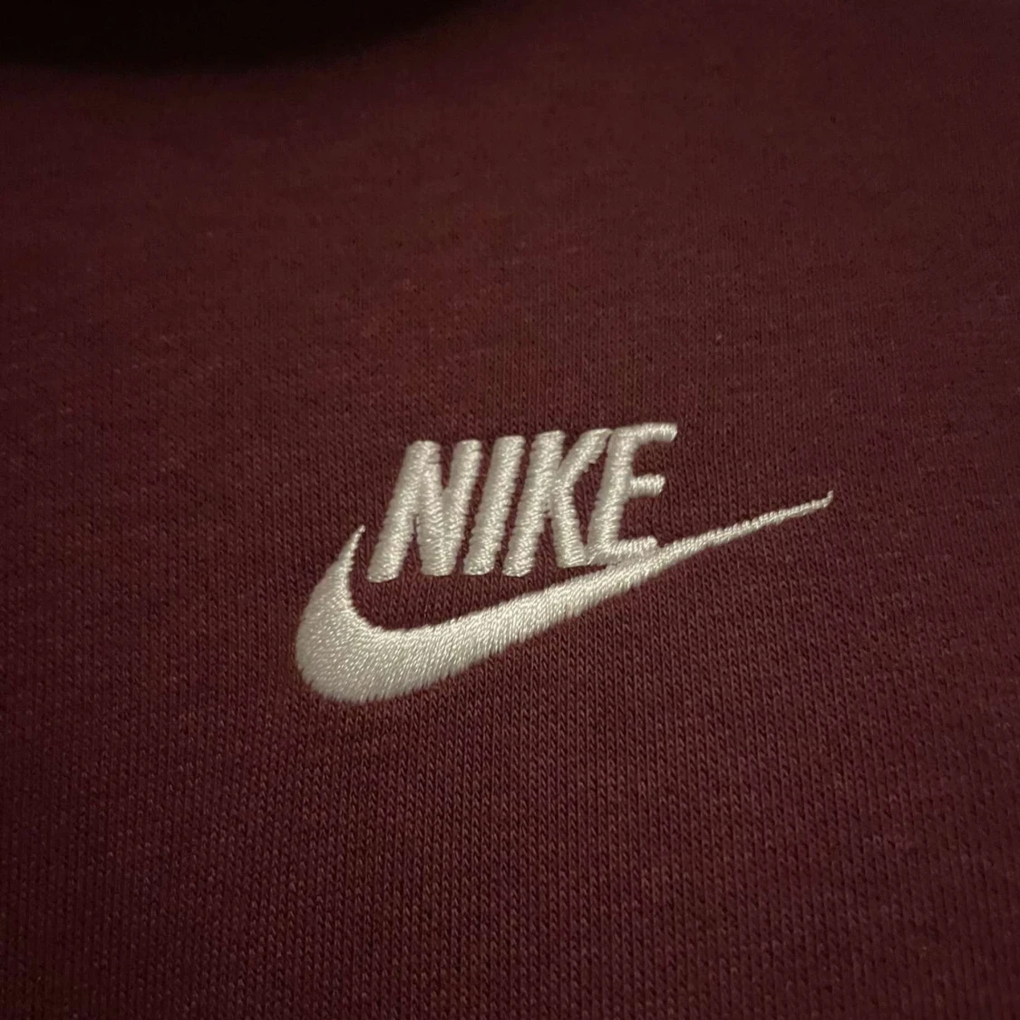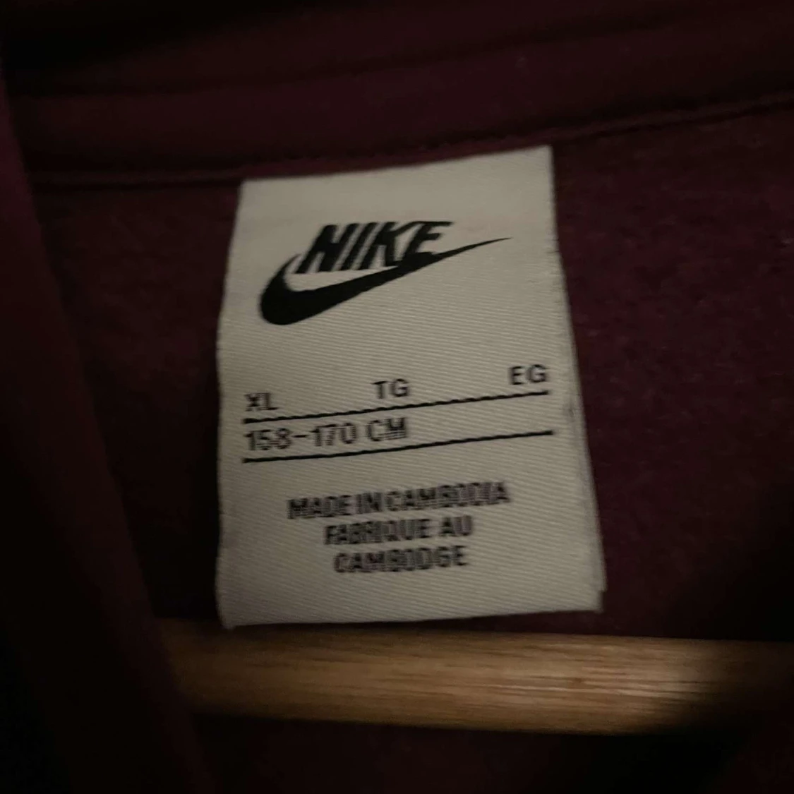 Säljer en snygg vinröd hoodie från Nike med klassisk logga på bröstet. Tröjan har en bekväm passform med långa ärmar och en praktisk magficka. Perfekt för kyligare dagar.