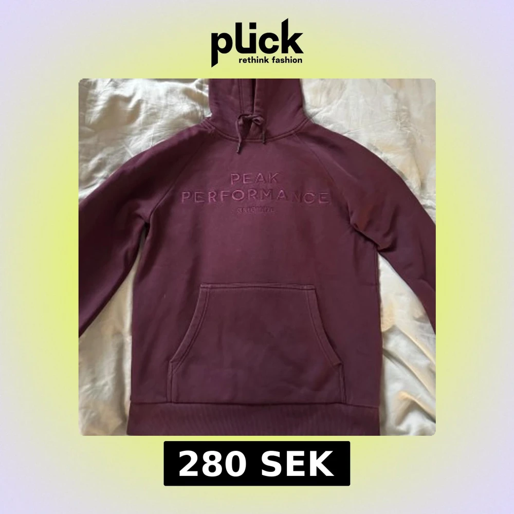 Säljer en snygg vinröd hoodie från Peak Performance med broderad logga på bröstet. Tröjan har en klassisk känguruficka och justerbar huva med snören.