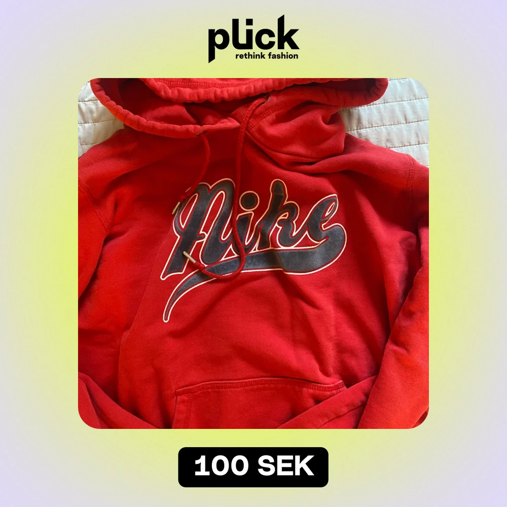 Säljer denna vintage Nike hoodien köpt second hand. Den är i gott skick utan större slitningarna, tror dock den har en liten svart fläck på insidan men den syns inte. Den är i herrstorlek så jag har använt den som oversized.