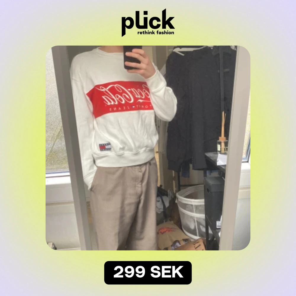 Tommy jeans sweatshirt, krämfärgad med röd ruta. Storlek xs, men passar verkligen mer som en m/s.