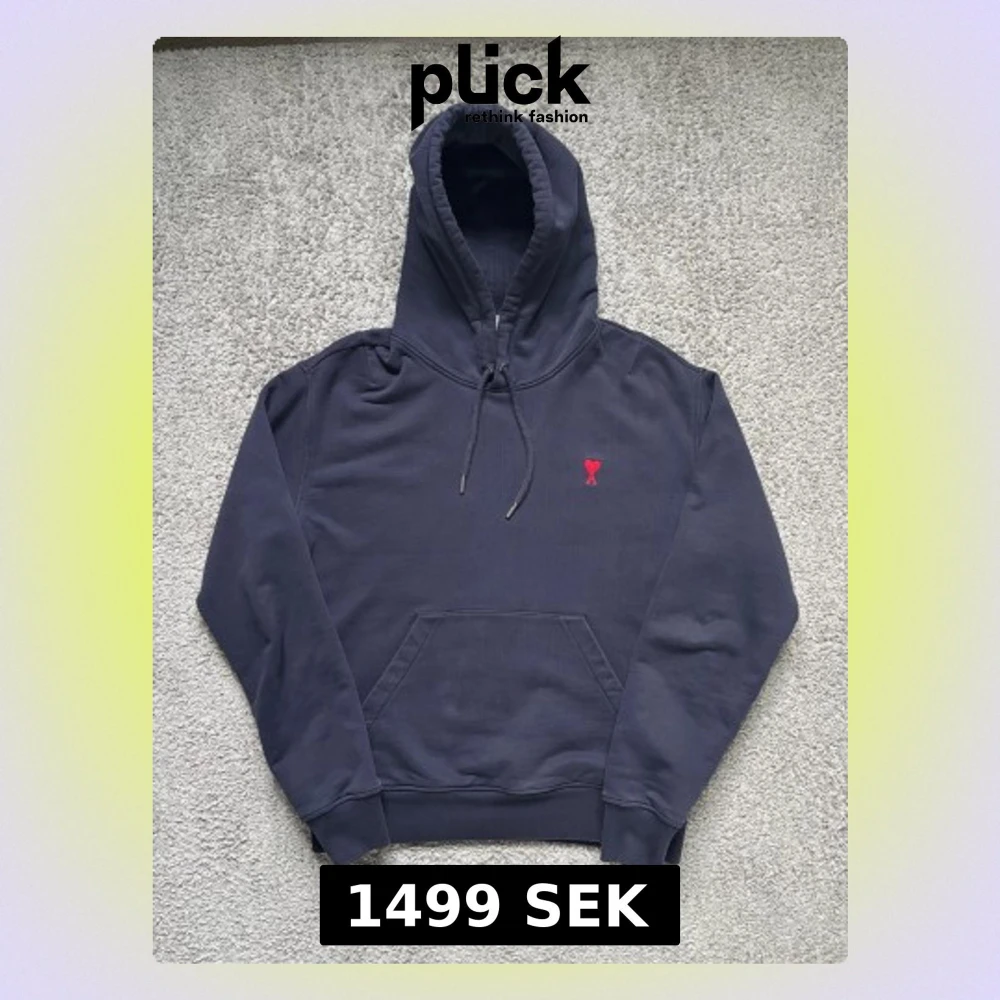 Tja, säljer en äkta mörkblå Ami Paris hoodie i storlek M, tröjan är i väldigt bra skick och har inte några defekter, modellen är 187 cm, väldigt eftertraktad hoodie så kom privat vid minsta lilla och pris går självklart att diskutera vid snabb affär💯🍾🥂