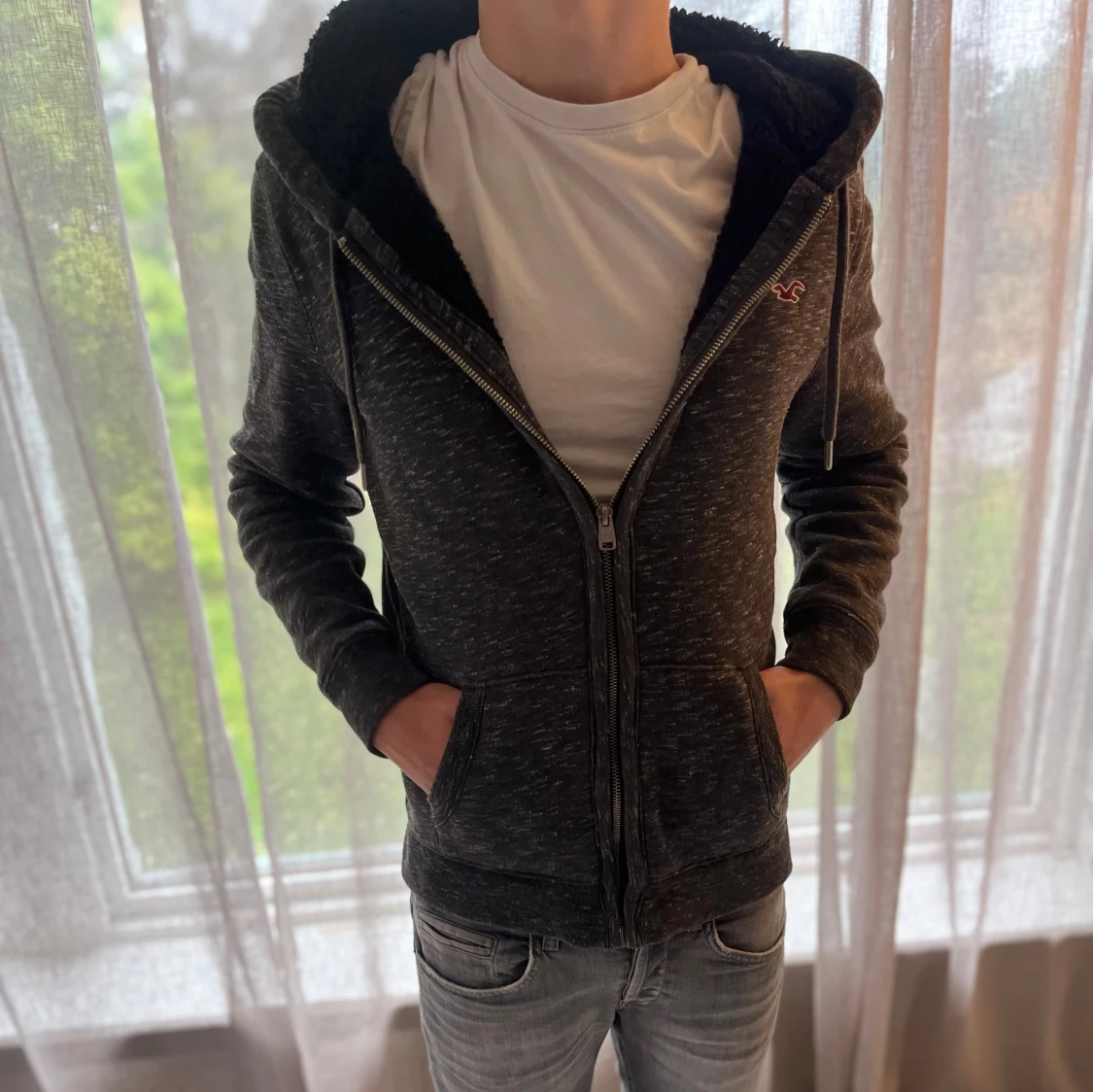Holister hoddie som är grå med svart päls på insidan. Storleken är S📏 Hoddien är i mycketbra skick 9/10🌟 Modellen är 177cm och väger 65kg📏 Skriv gör mer info🌟