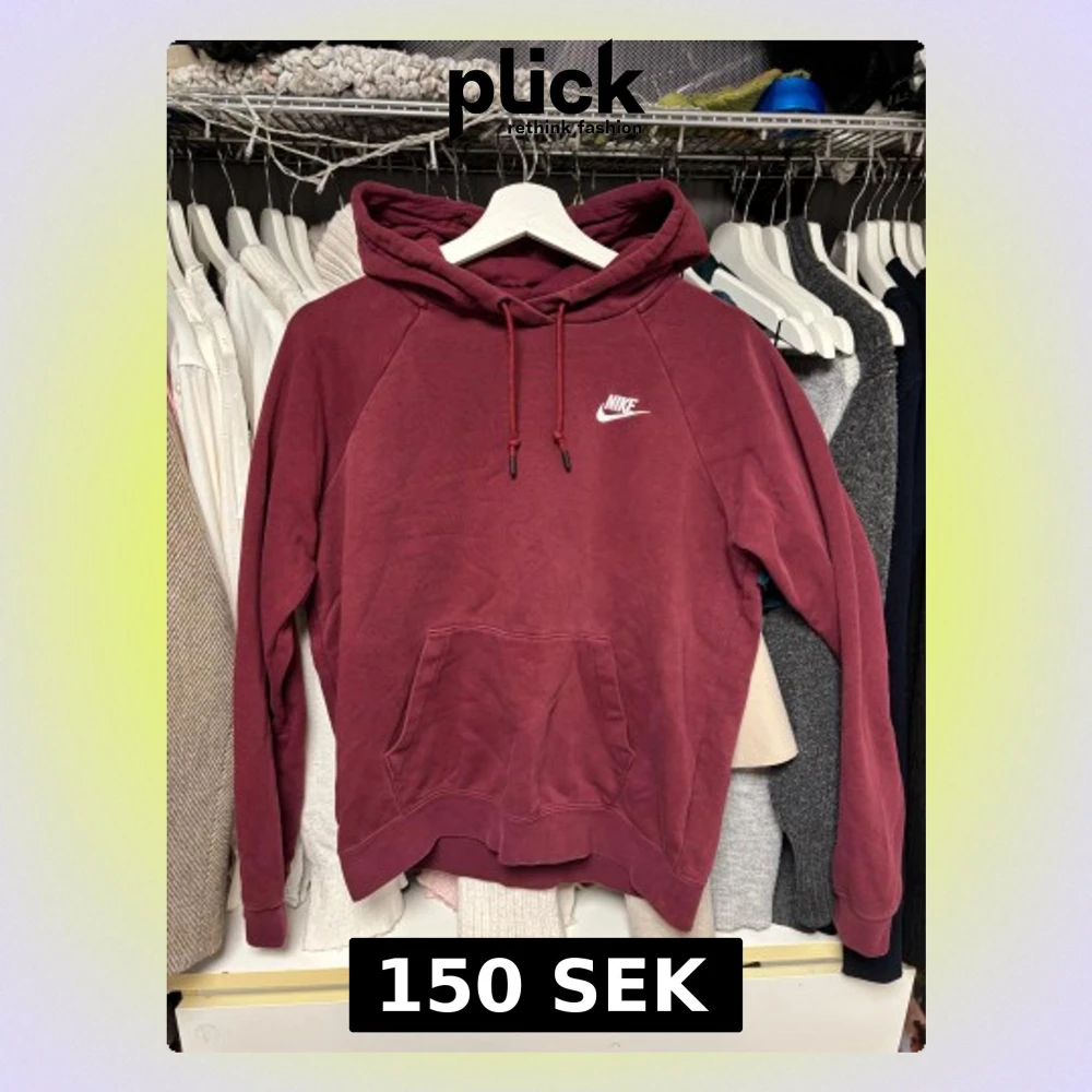 Snygg vinröd hoodie från Nike i storlek S. Tröjan har en klassisk huva med snörning, en stor magficka och Nike-logga broderad i vitt på bröstet.