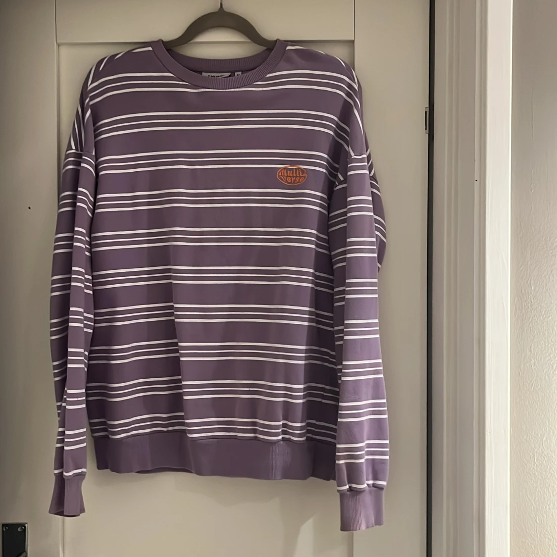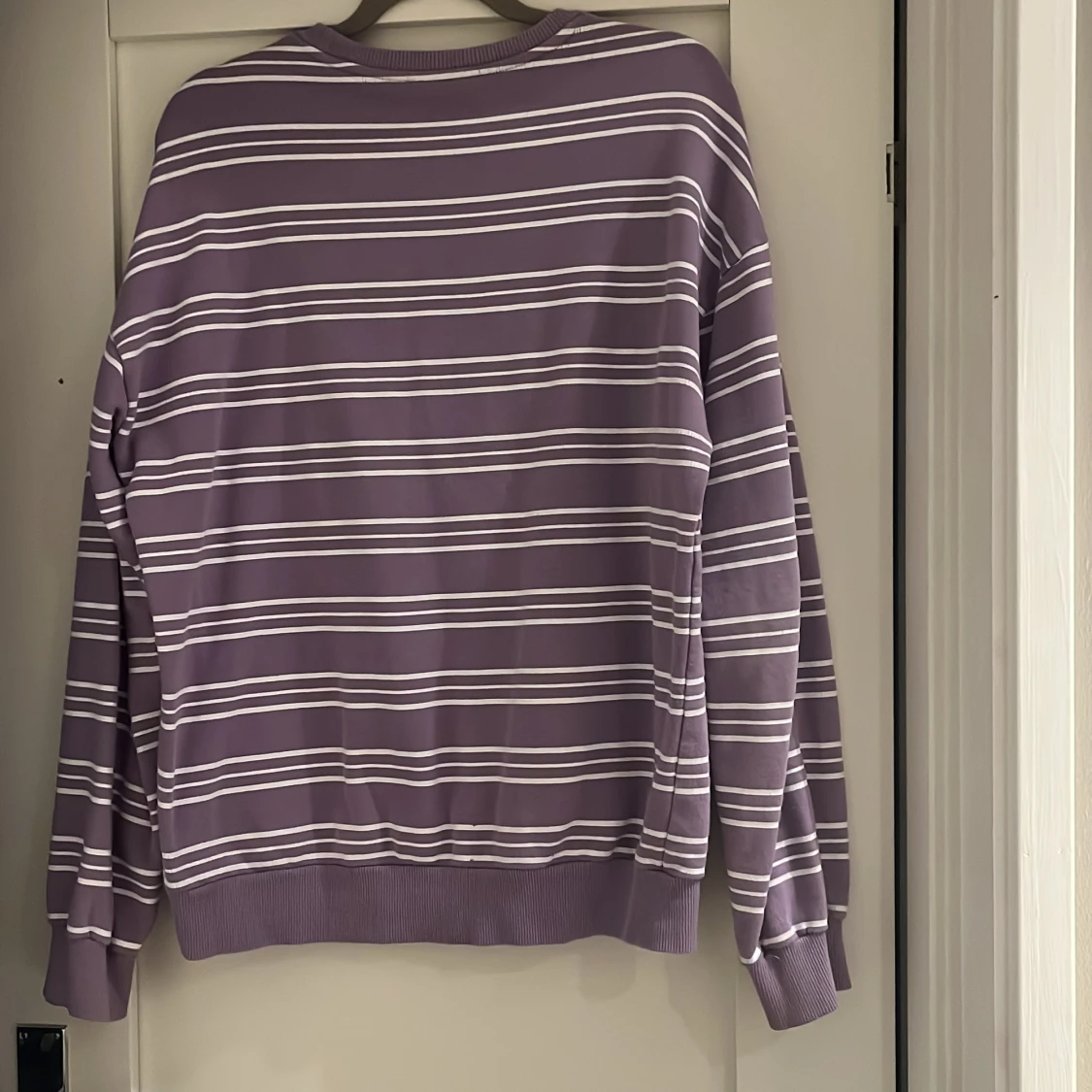 Lila vitrandig sweatshirt från Junkyard. Storlek M, nästan helt oanvänd💜