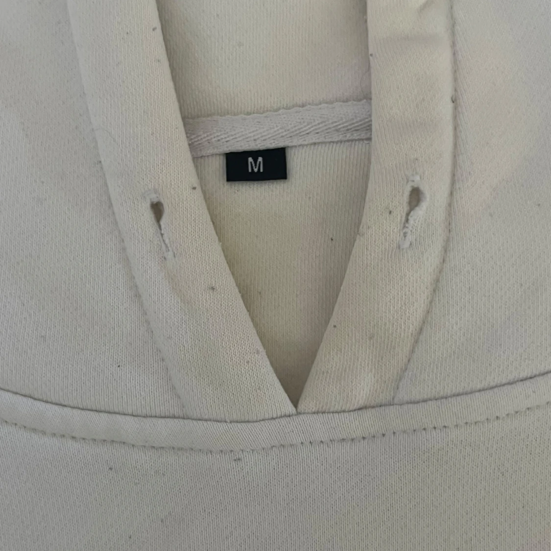 har fläckar på framfickan och lite gula toner i huvan och jag vet inte om det går att få bort. saknar också snöre. är mindre i storleken typ xxs-xs och inte det som står på lappen. köpte den för 600kr.