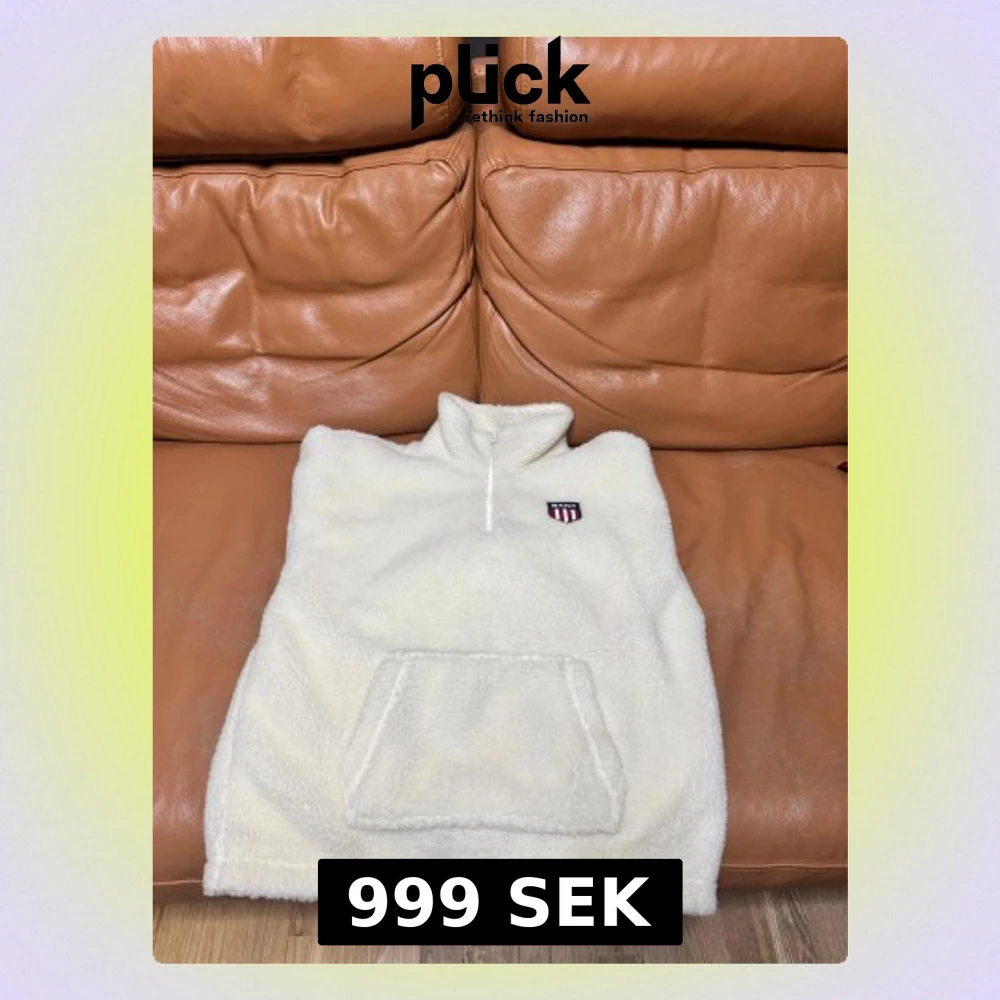 Supermjuk och fluffig vit fleece-tröja från GANT med broderad logga på bröstet. Tröjan har en praktisk half zip, hög krage och stor magficka. Perfekt för kyliga dagar när du vill vara både varm och snygg.