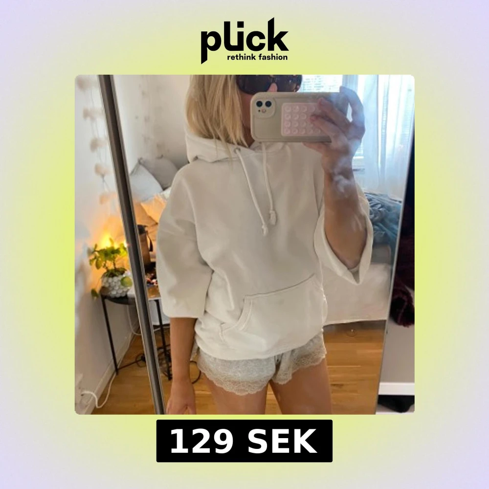 Säljer en vit hoodie med känguruficka och justerbar dragsko i huvan. Perfekt för en avslappnad stil. Passar bra till både jeans och shorts.