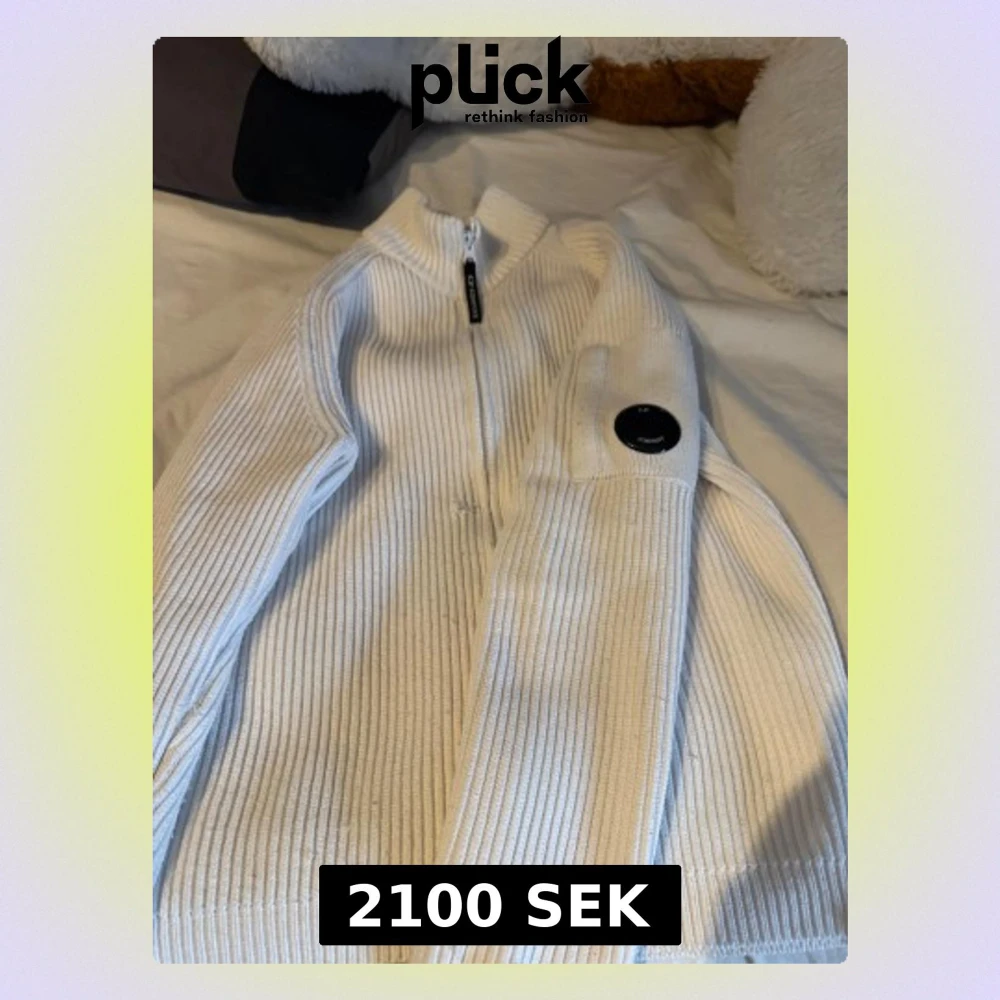 Ny pris 2,7 det va rea Säljer en vit ribbstickad kofta från C.P. Company perfekt i vintern med dragkedja framtill och deras ikoniska linsdetalj på ärmen. Koftan har hög krage och är långärmad, perfekt för lager-på-lager. Materialet är mjukt och stickat, vilket ger en clean och modern look. Har ett lite defekt skriv så skickar jag