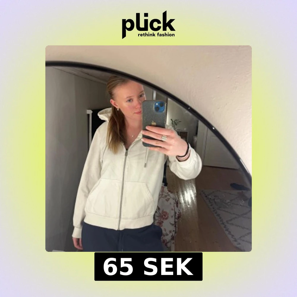 Säljer denna vita zip hoodie från H&M i storlek S. Har lite noppror