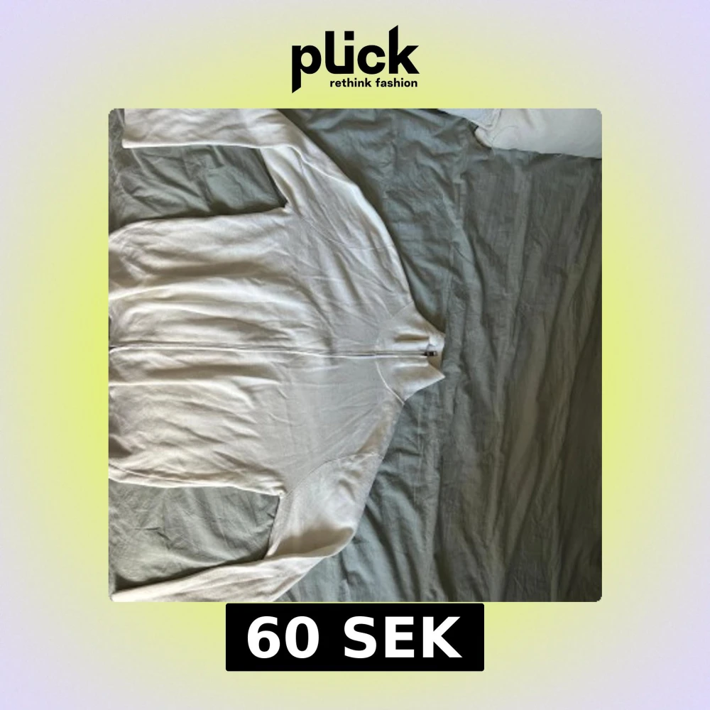 Säljer en stilren vit ziptröja med lång ärm och dragkedja framtill. Tröjan är i mjuk bomull och passar perfekt för lager-på-lager. Enkel och clean design utan synliga loggor eller mönster.