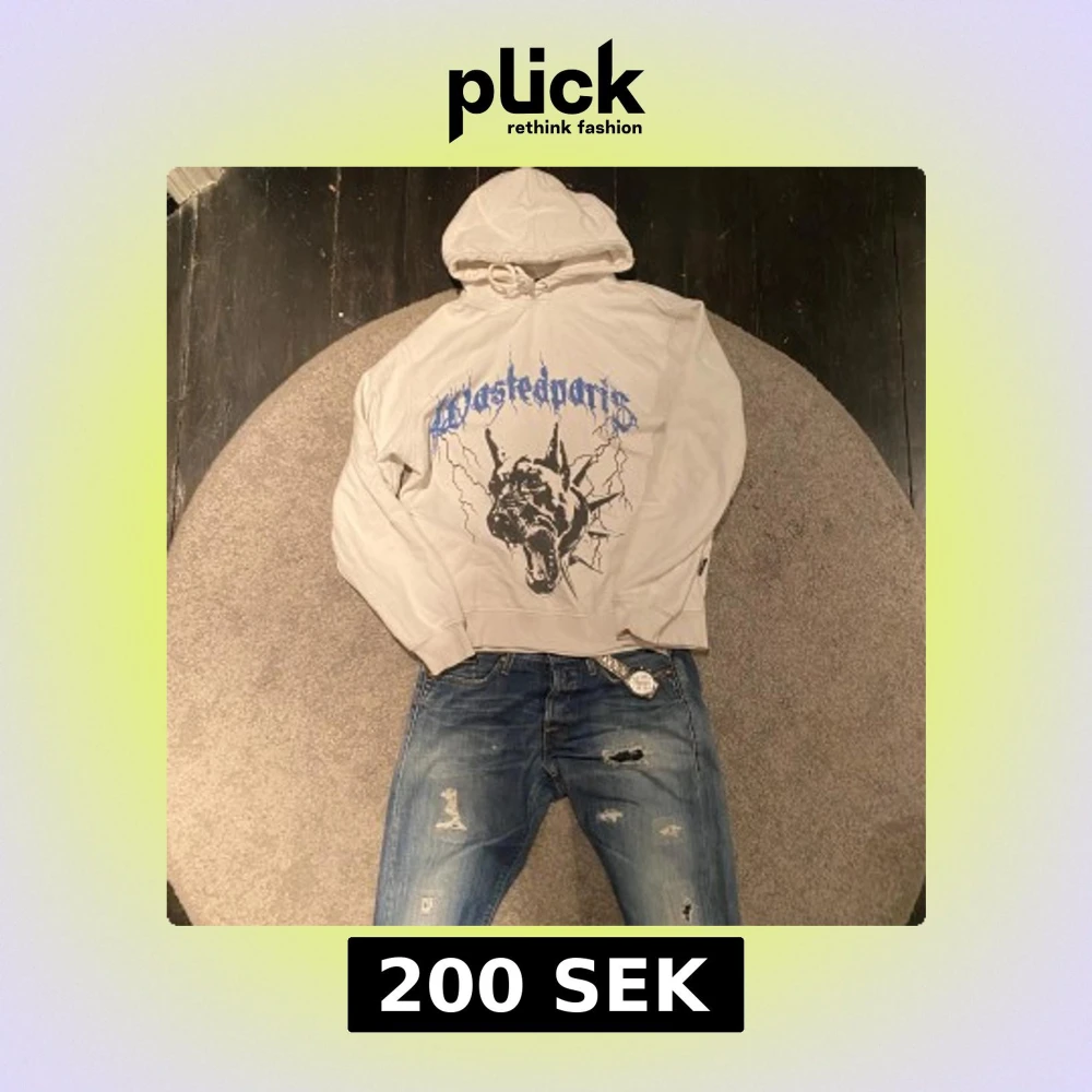 Riktig snygg hoodie av Wasted med stort tryck och uppdelad maggicka. Passar till de mesta. Strl S
