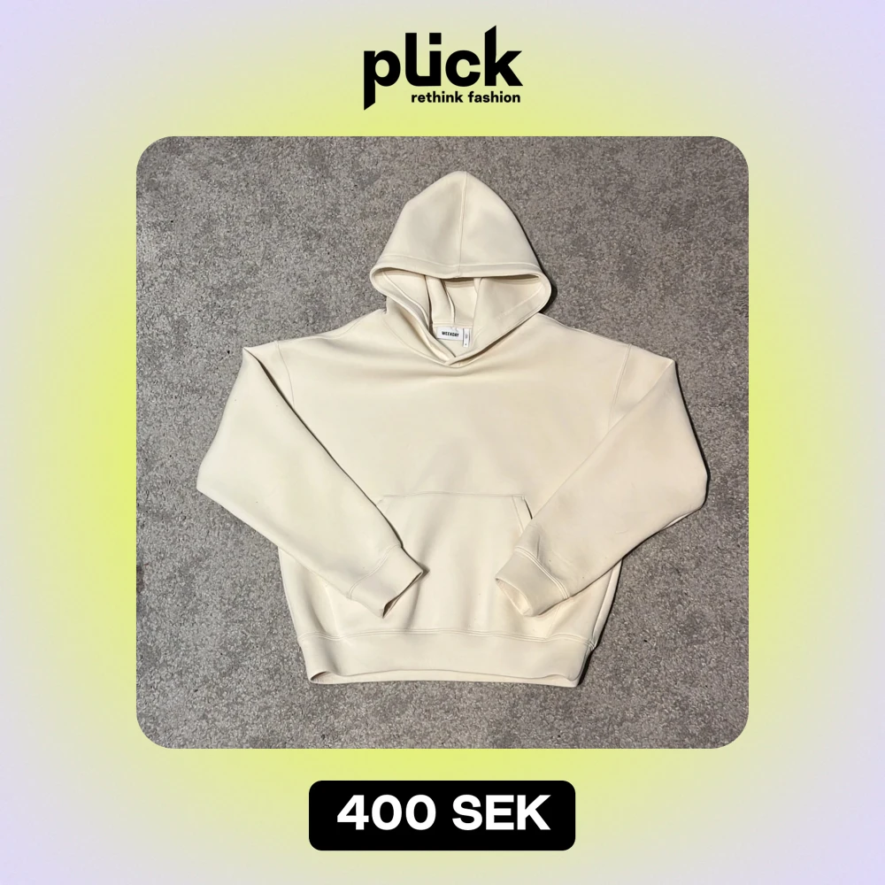 Oversized hoodie från weekday som är helt oanvänd. Hoodien är vit/ beige. Skriv om frågor finns!
