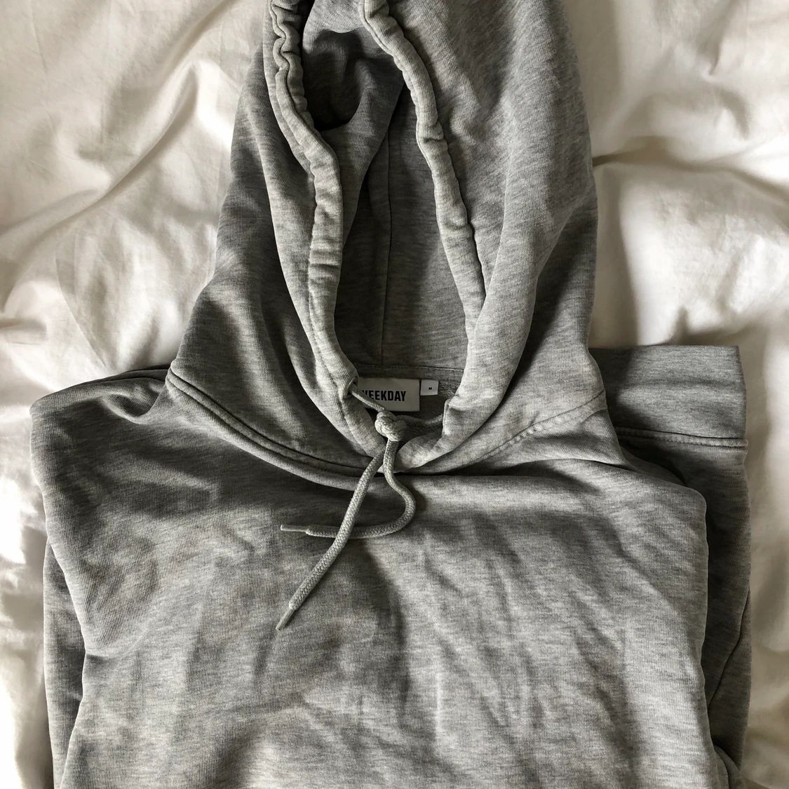 Hej! Det här är en grå hoodie från Weekday. Otroligt nöjd med denna men har för många hoodies. Köpt 2019 och använts kanske 5 ggr.