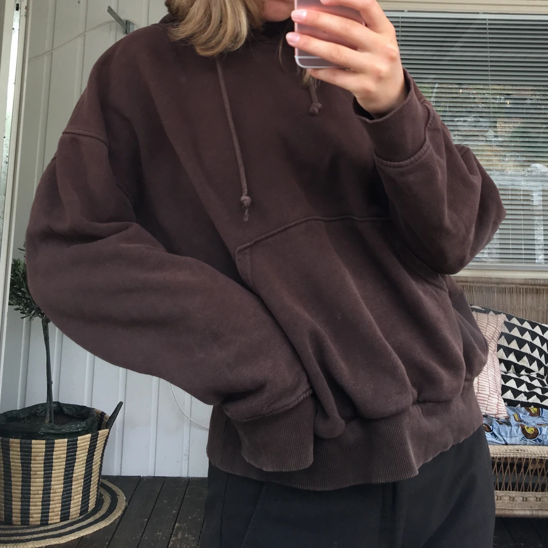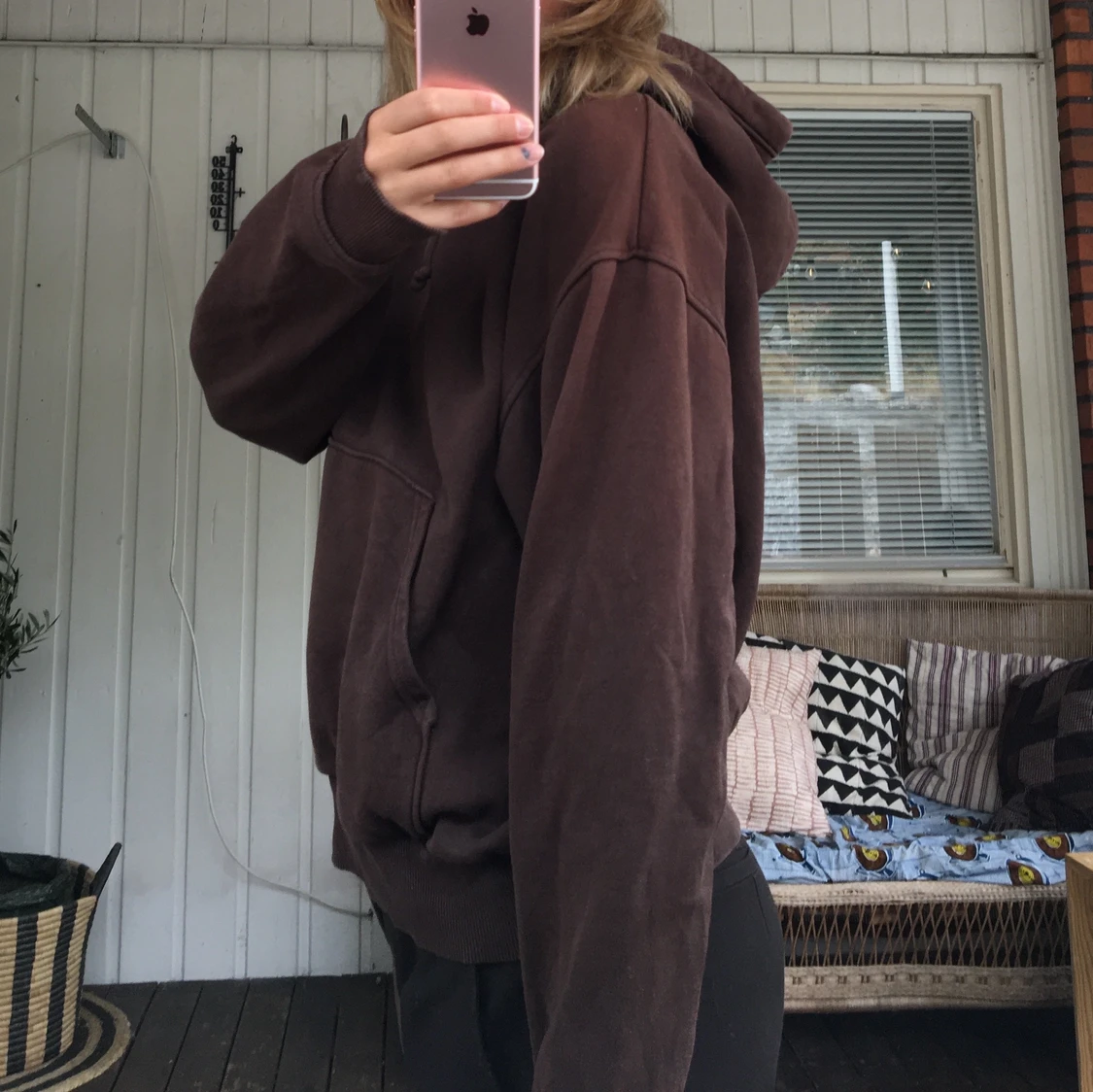 Brun hoodie från weekday, jättenajs passform. Lappen är avklippta men tror det är storlek S (boxig och oversized modell) Finns en missfärgning på ena axeln som man knappt tänker på, se sista bilden (lite som de en cool detalj istället) 💓