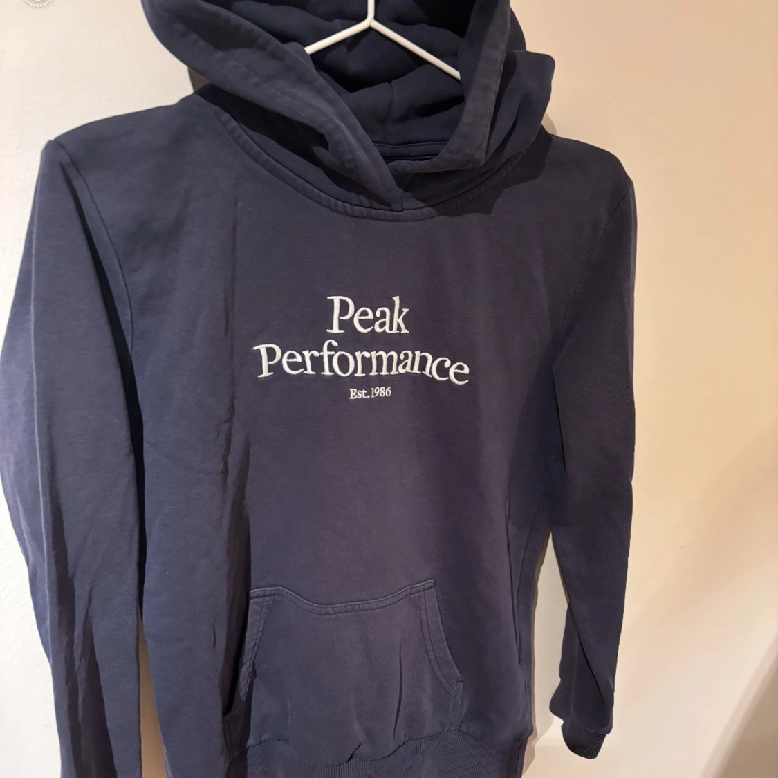 Snygg blå peak hoodie! Storlek 150-160, xs! Skick 8/10! Inga tecken på användning! För mer info är det bara att skriva i dm! För snabb affär kan vi diskutera pris!🤩🤩