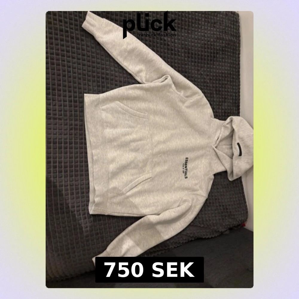 PRIS KAN DISKUTERAS!! Snygg ljusgrå hoodie från Fear of God Essentials med svart tryck både fram och bak. Klassisk känguruficka, ribbade muddar och stor huva. Tillverkad i mjuk bomullsblandning som känns riktigt skön mot huden. Perfekt för dig som gillar streetwear och clean stil.