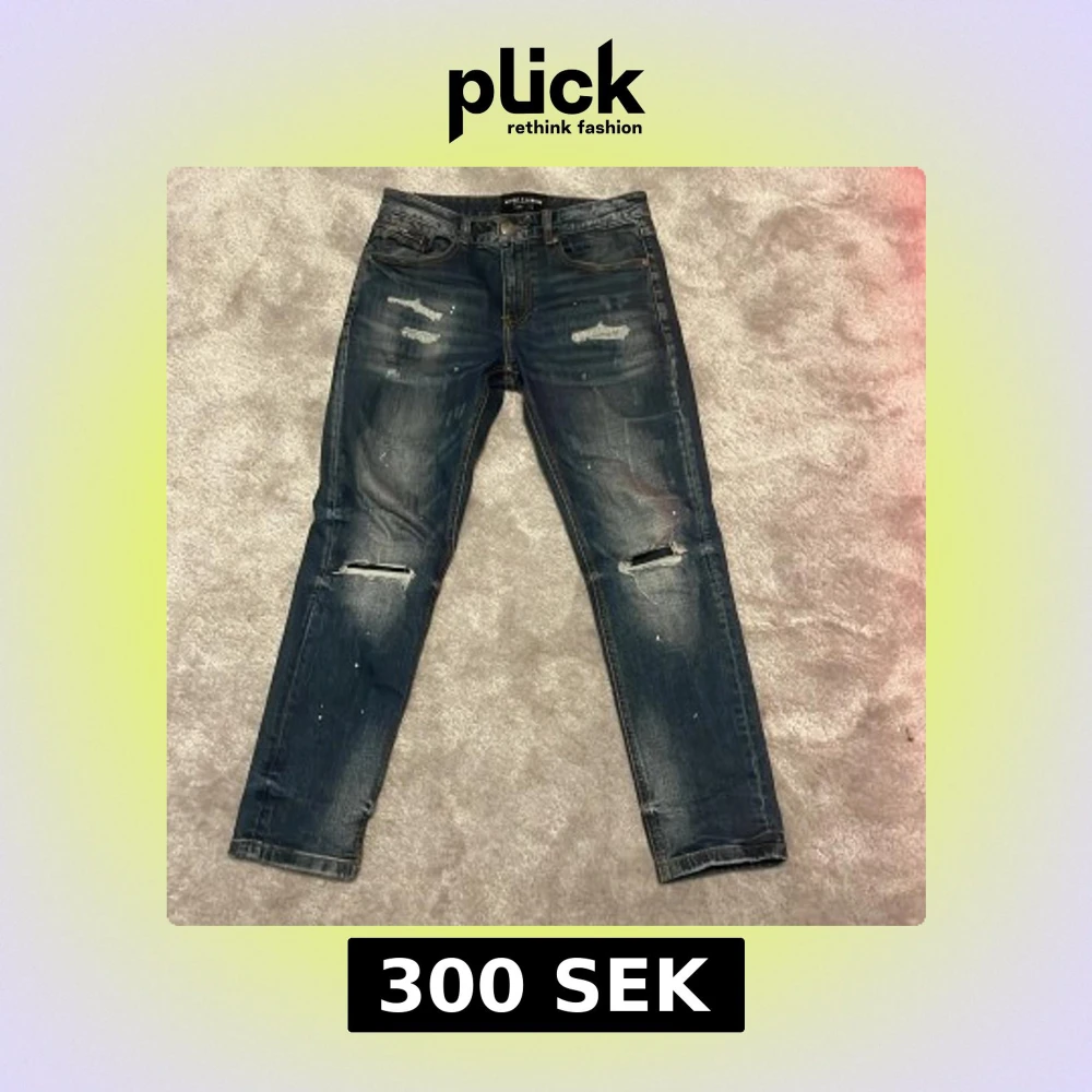 Snygga blå jeans från Supply & Demand med slitna detaljer och dragkedja. Perfekt för en avslappnad stil. Midjan är låg och passformen är tight. Passar perfekt till den som är 170-176. W28 L30