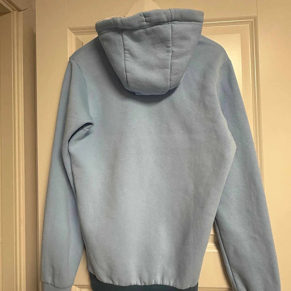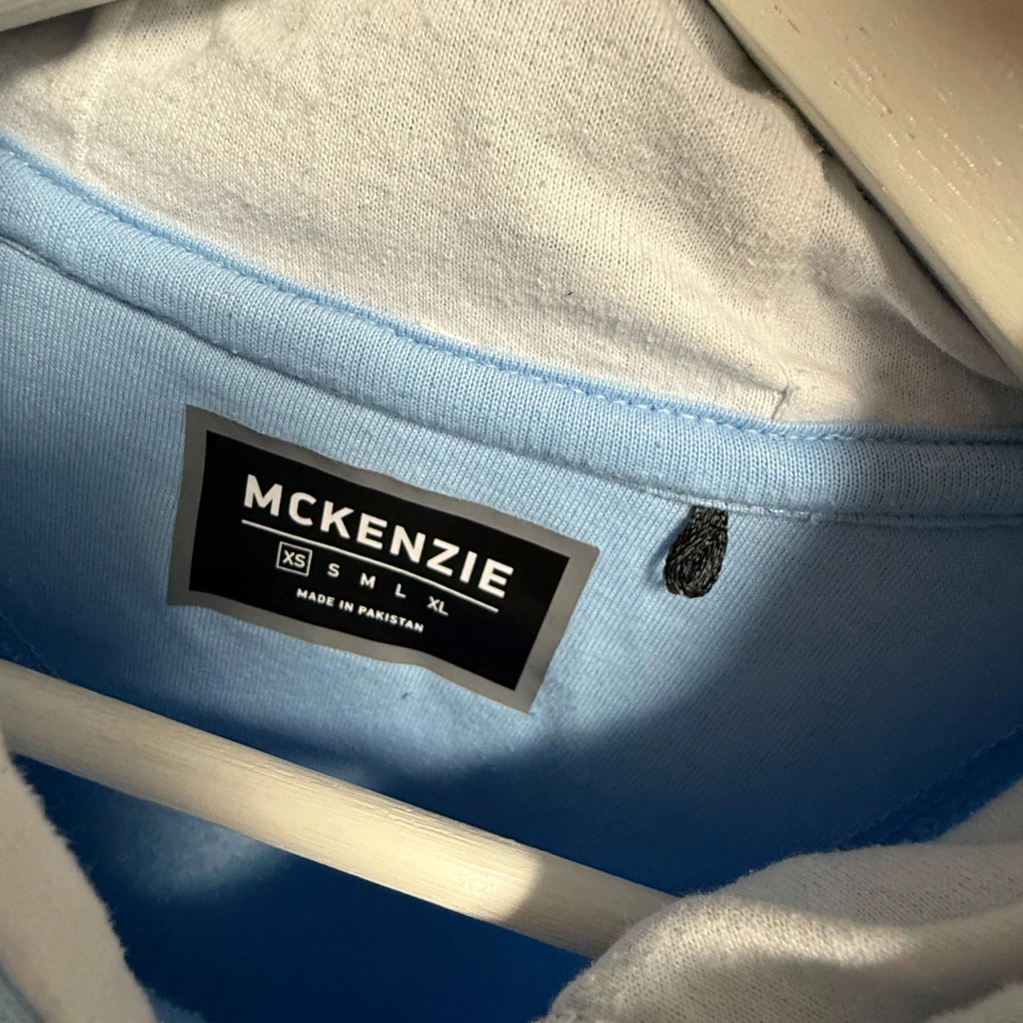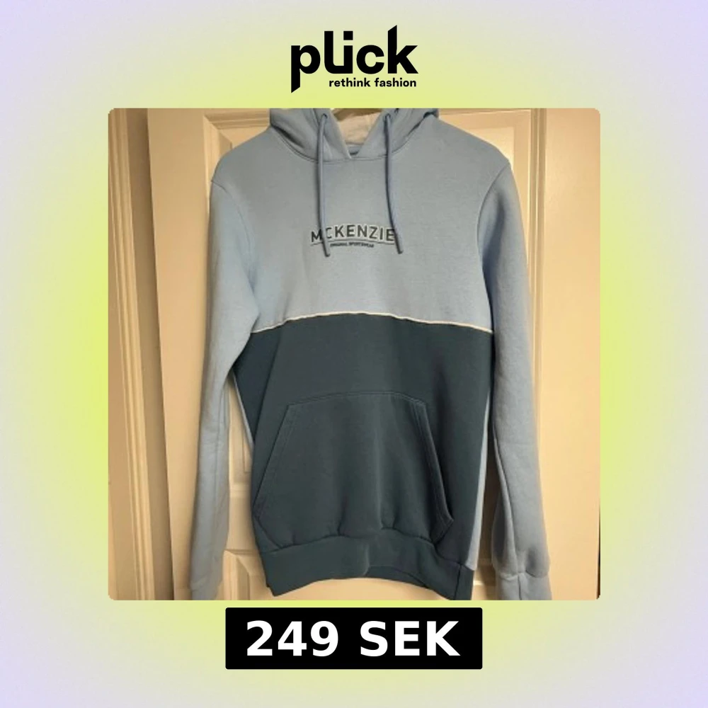 Snygg hoodie från McKenzie i två nyanser av blått. Tröjan har huva med snörning, stor magficka och broderad logga på bröstet. Perfekt för chill dagar och enkel att matcha med jeans eller joggers.