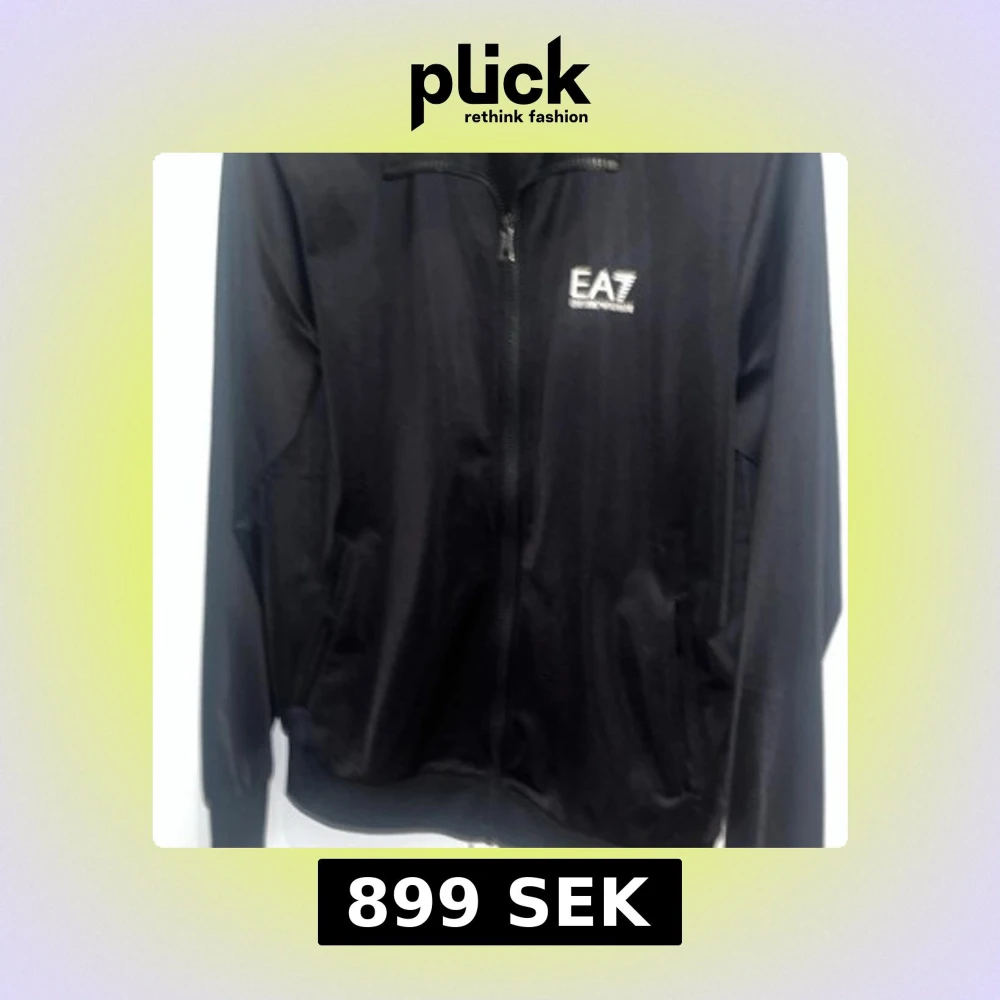 Svart vindjacka från EA7 Emporio Armani med stilren design och logga på bröstet. Jackan har dragkedja framtill, två sidofickor och ribbade muddar. Materialet är lätt och syntetiskt, perfekt för en sportig look. Långärmad modell med diskreta detaljer på ryggen. XS passar S. Jätte bra skick