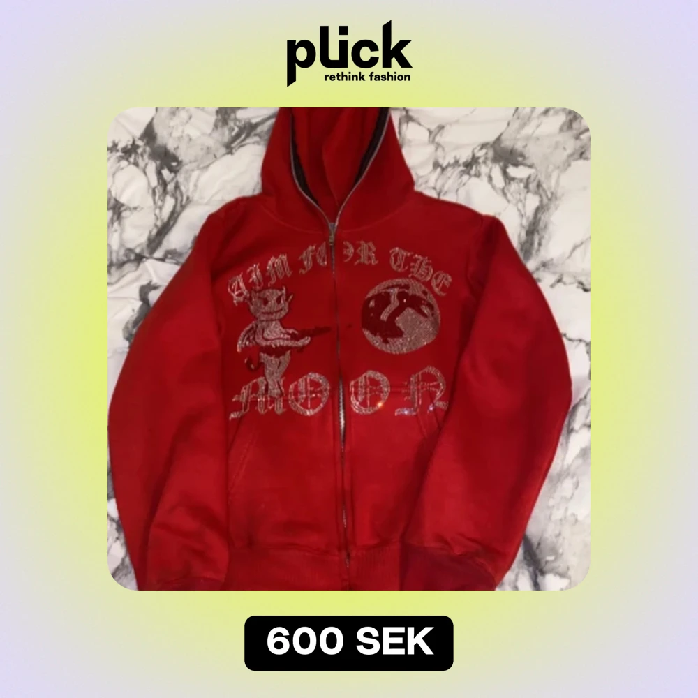 Säljer min Rhinestone zip hoddie. Den är i bra skick och det på ärmen går nog bort om man tvättar ärmen. Förutom det så är den bara bra. Pris kan ändras.
