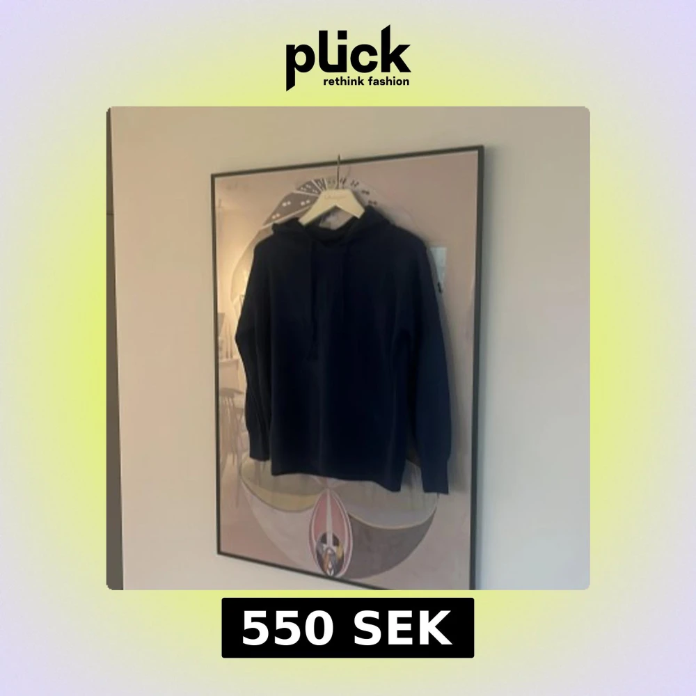 En stilren mörkblå merinoull hoodie. Den passar dig som är 170-175
