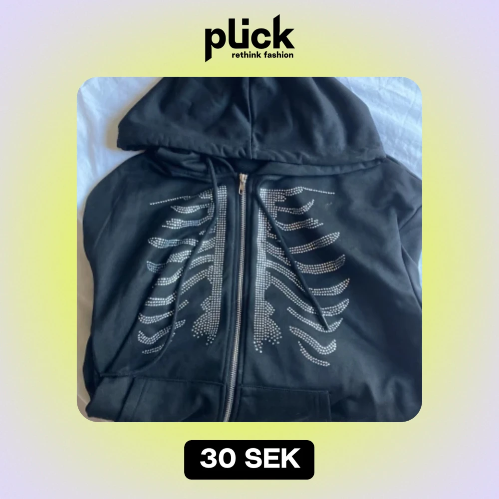 Skelett hoodie med diamanter 💎 med silver kedja 💗
