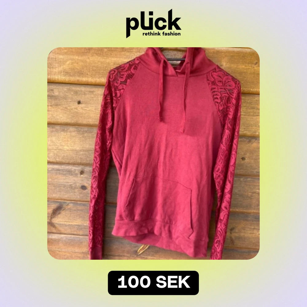 Fin vinröd hoddie med spets på armarna . Storlek xs men passar även S .