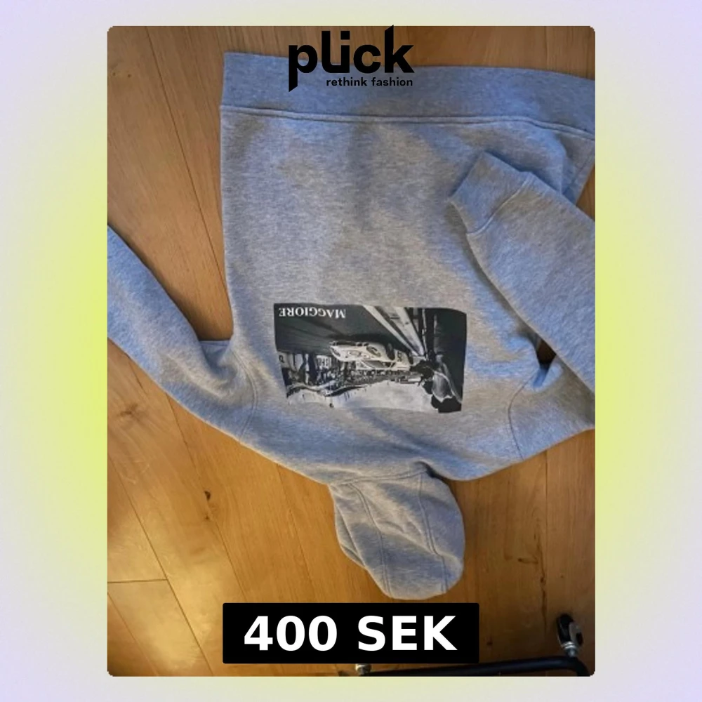 Snygg grå hoodie från Maggiore med stor svartvit fototryck på ryggen. Klassisk modell med huva och vita dragsnören samt känguruficka framtill. Tillverkad i mjukt sweatshirtmaterial som passar perfekt till en avslappnad stil. Storlek M i barn, skulle då säga Xxs-Xs i vuxen storlek.