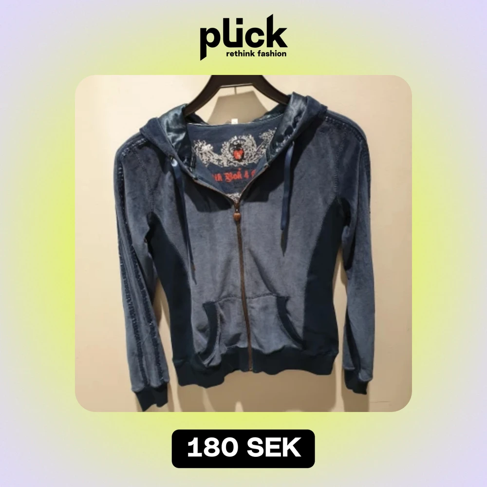 Blå 2000s y2k tracksuit från bik bok Oslo. Jätte fina rhinestone detaljer och velvet tyg